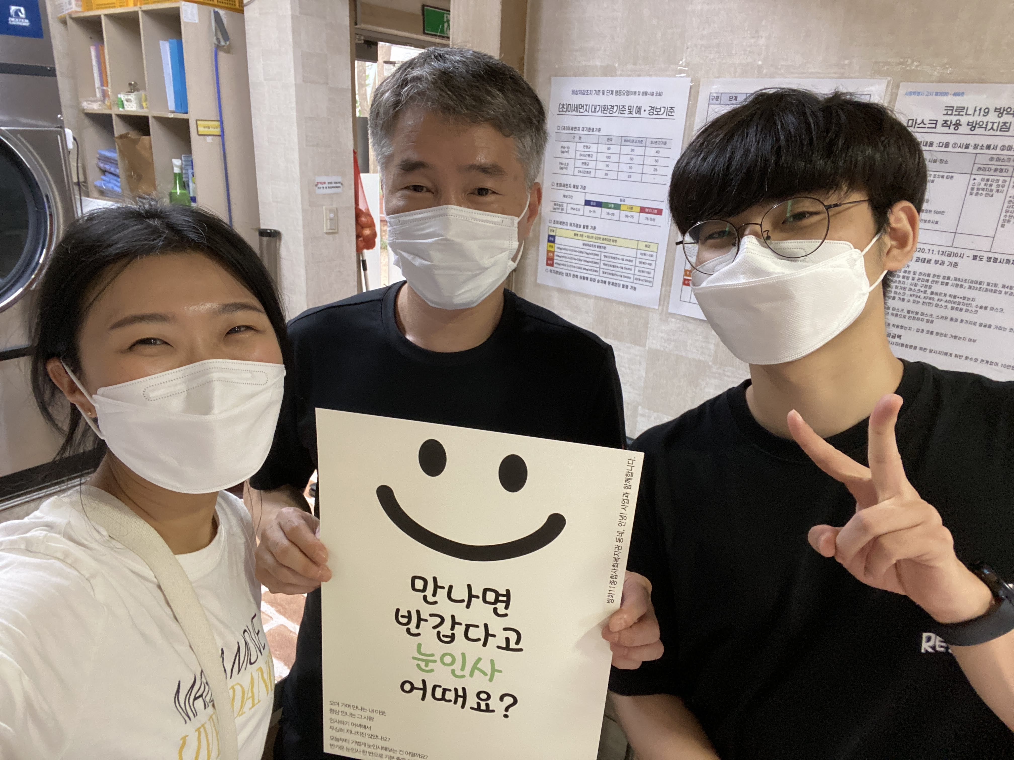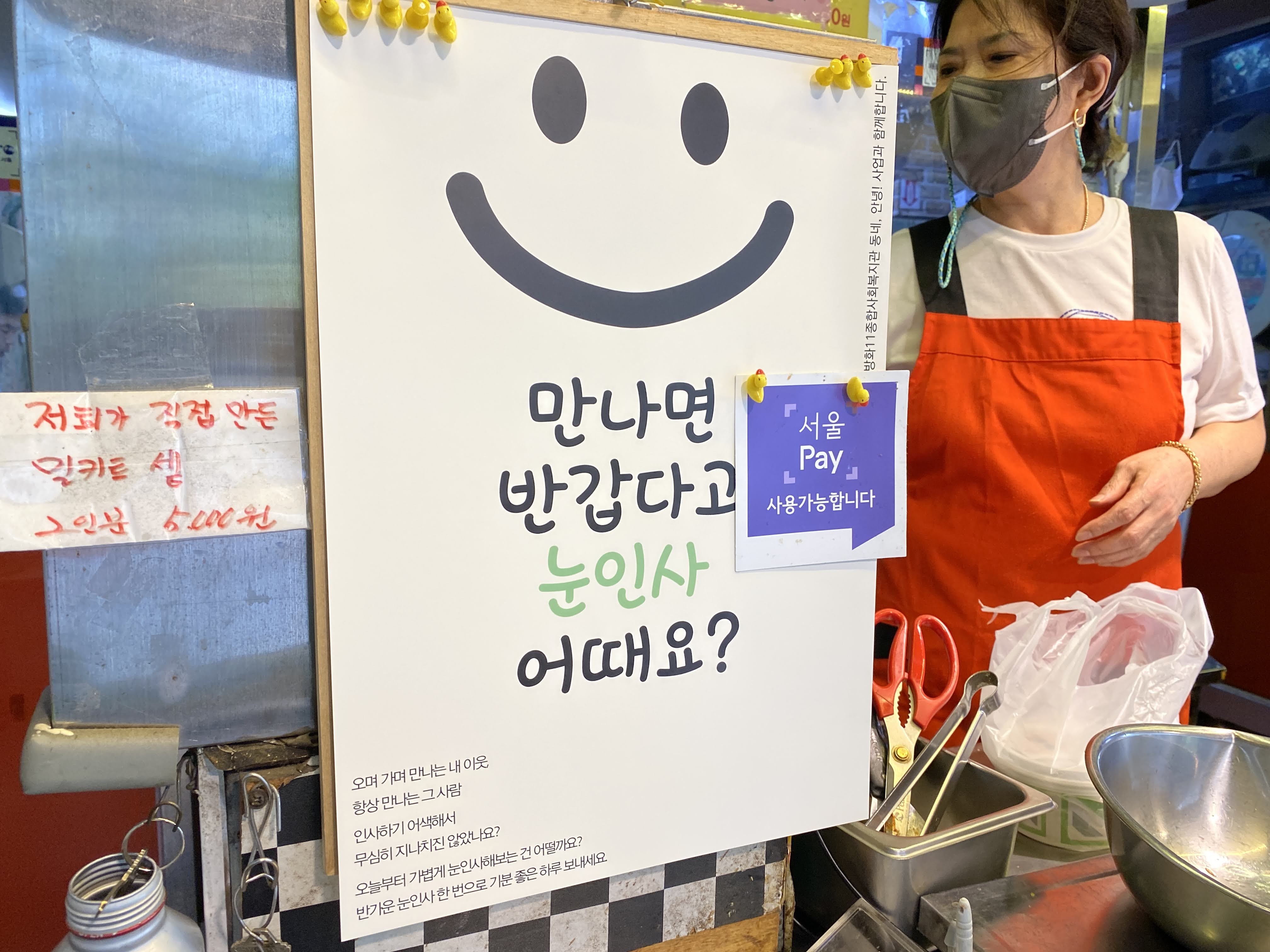 눈만 보이니 눈으로라도 인사나누는 건 어떨까요?