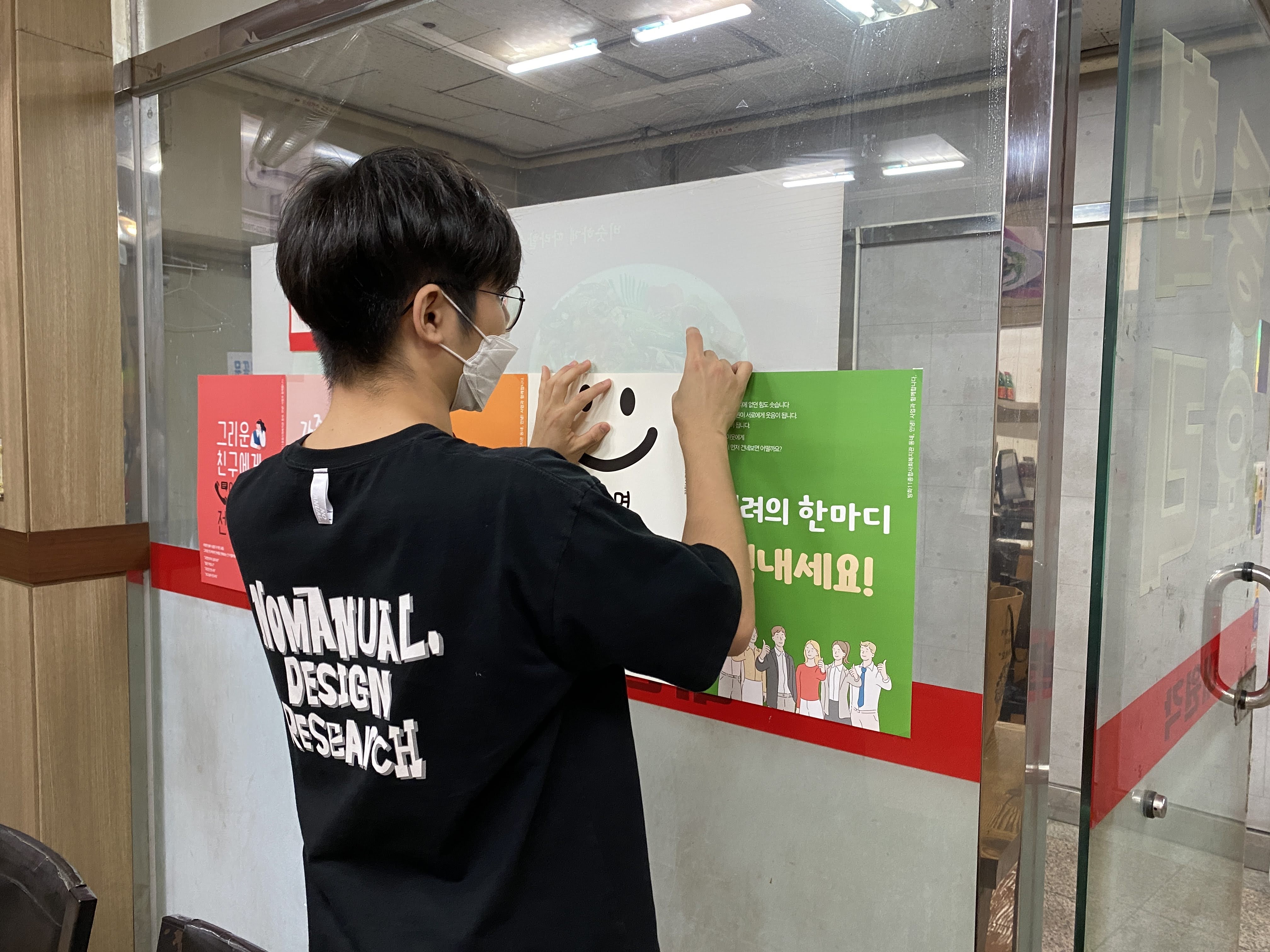 가만히 듣던 사장님도 좋은 일이라며 가게에 붙여도 된다고 하셨습니다.