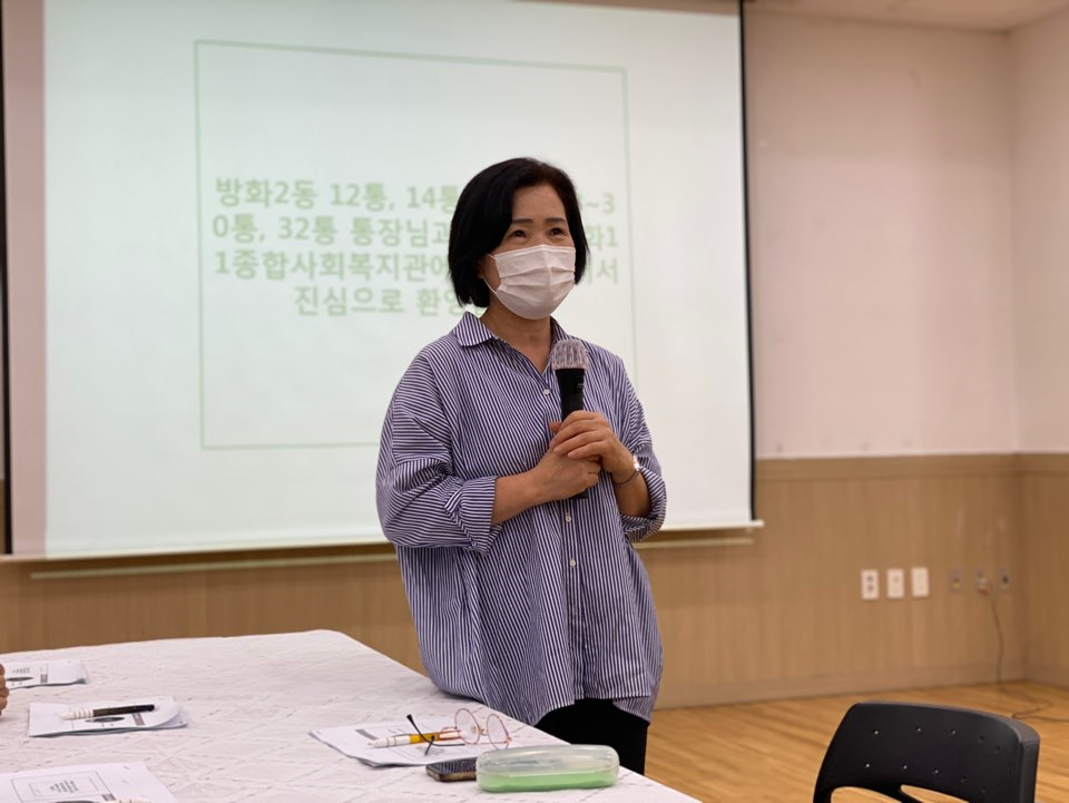 - 이선숙 통장님(21통) : 두달에 한번씩 종량제 봉투를 전달하러 가는데 그 일을 같이 하자며 복지관에서 제안해줘서 고마웠어요. 또 막상같이 하니 주민들의 상황을 자세히 들여다볼 수도 있고 저도 좋더라고요. 선생님들이랑