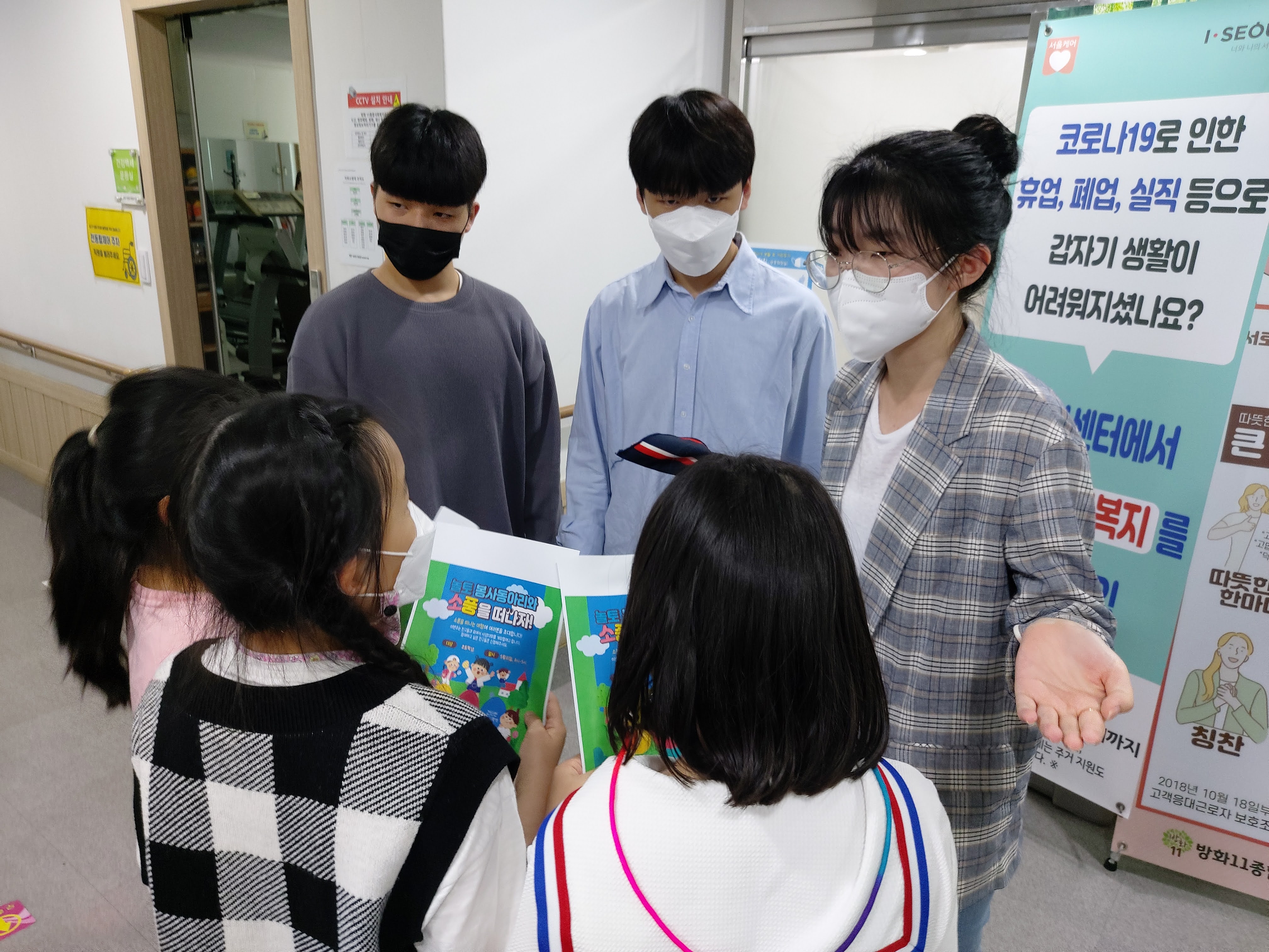 직접 복지관 복도에서 동네 아이들을 만나서 설명하며 적극적으로 홍보했습니다.