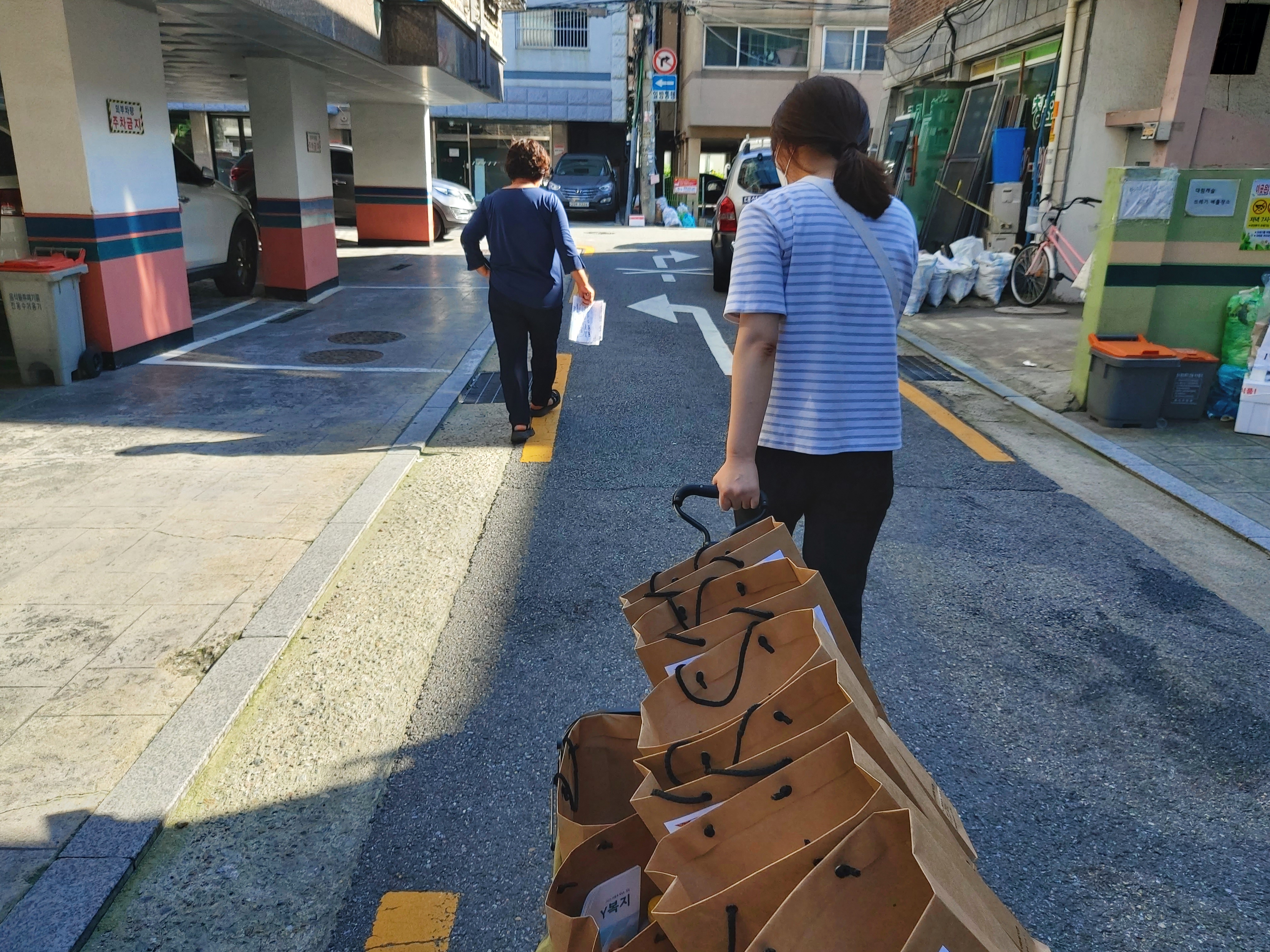 통장님들께서 꾸러미를 나눌 이웃들에게 연락하고 길을 앞장서주셨습니다.