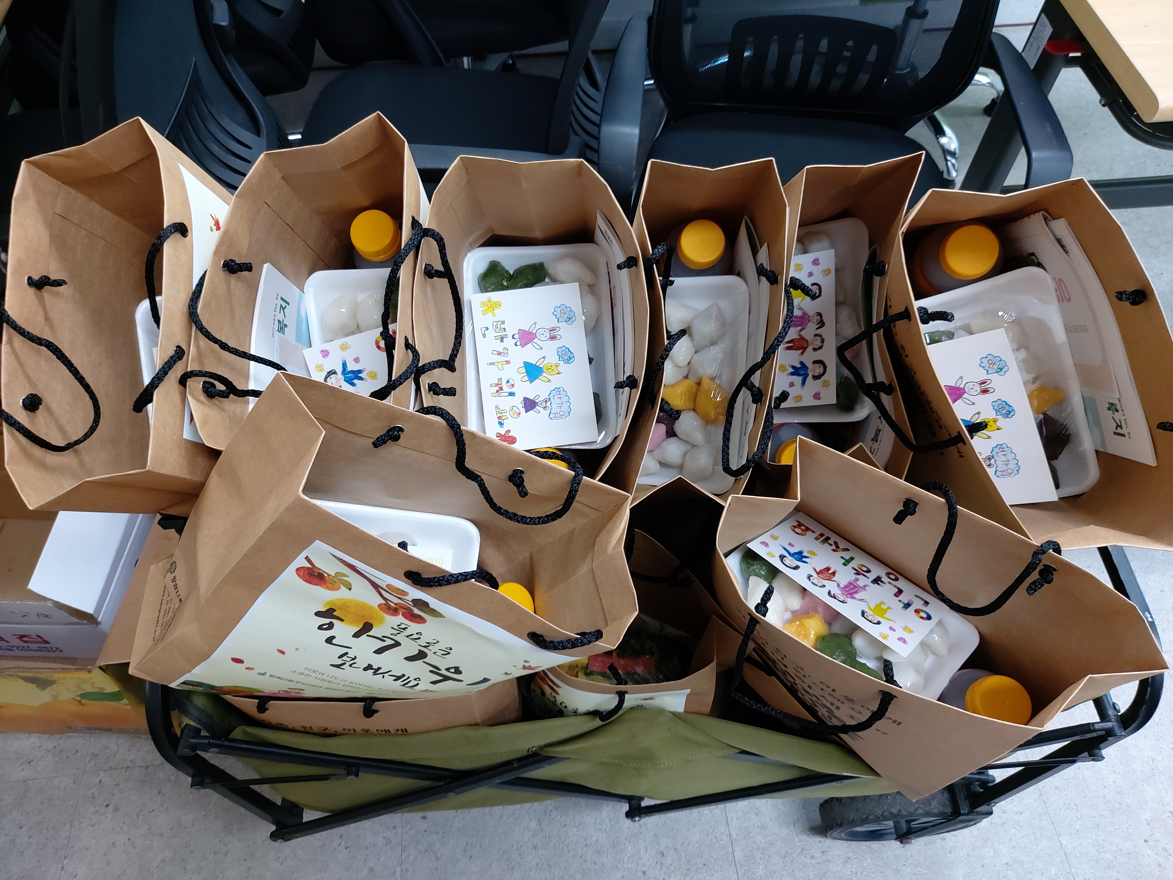 복지관에서 추석 선물꾸러미를 준비하여 전달하기로 했습니다.