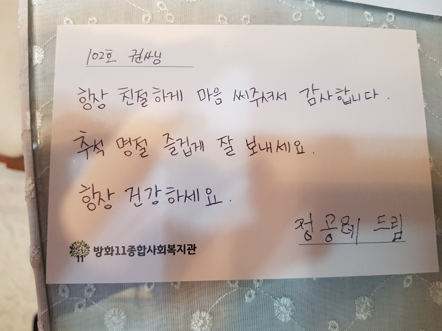 이번 추석인사캠페인에 참여하며 수줍게 전하셨습니다.