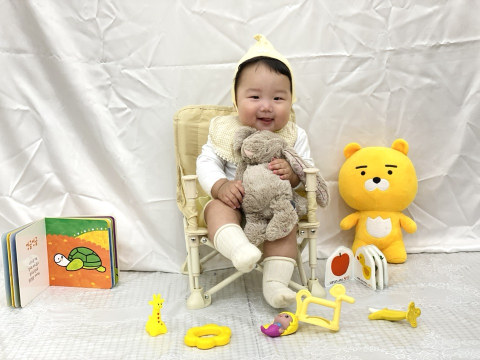 "진짜 스튜디오 같다. 백일 사진 찍는것 같아요."