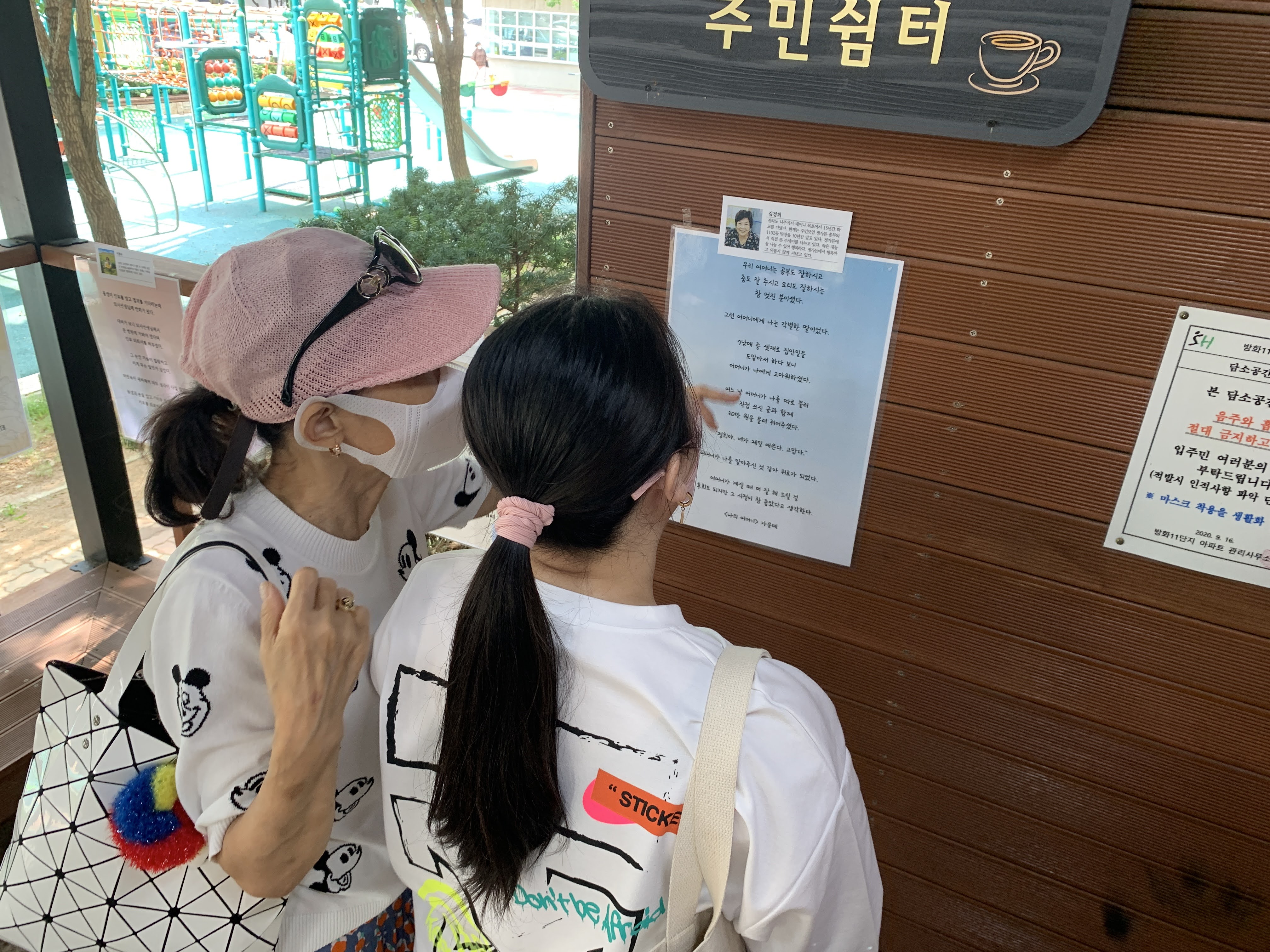 “이렇게 전시회를 하니까 주민 쉼터에 사람들이 많이 모이고 이야기 나눌 수 있어 좋네요. 분위기가 달라요.”
