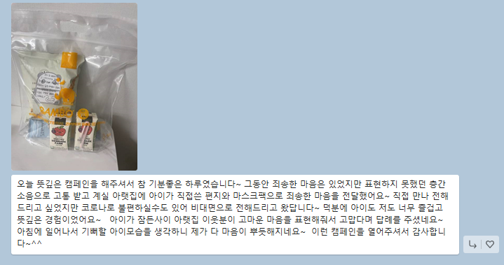 마스크팩을 구실로 그 마음을 이웃들과 잘 나누실 수 있도록 돕고 싶었습니다.