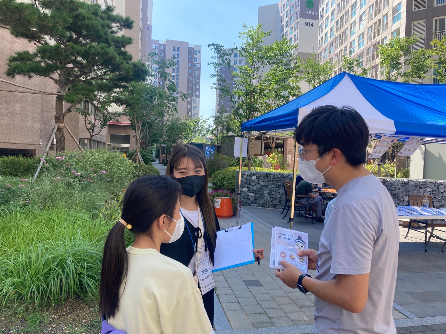 마곡9단지 정진욱 동대표님, 관리사무소 과장님, 소장님께서 인사캠페인을 함께 해주셨습니다.