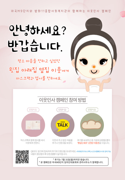(동네, 안녕!)마곡9단지 1+1 마스크팩 인사캠페인