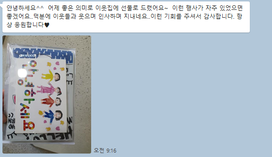 생각나는 이웃에게 주면 좋겠다고 반기시는 주민들도 계셨습니다.