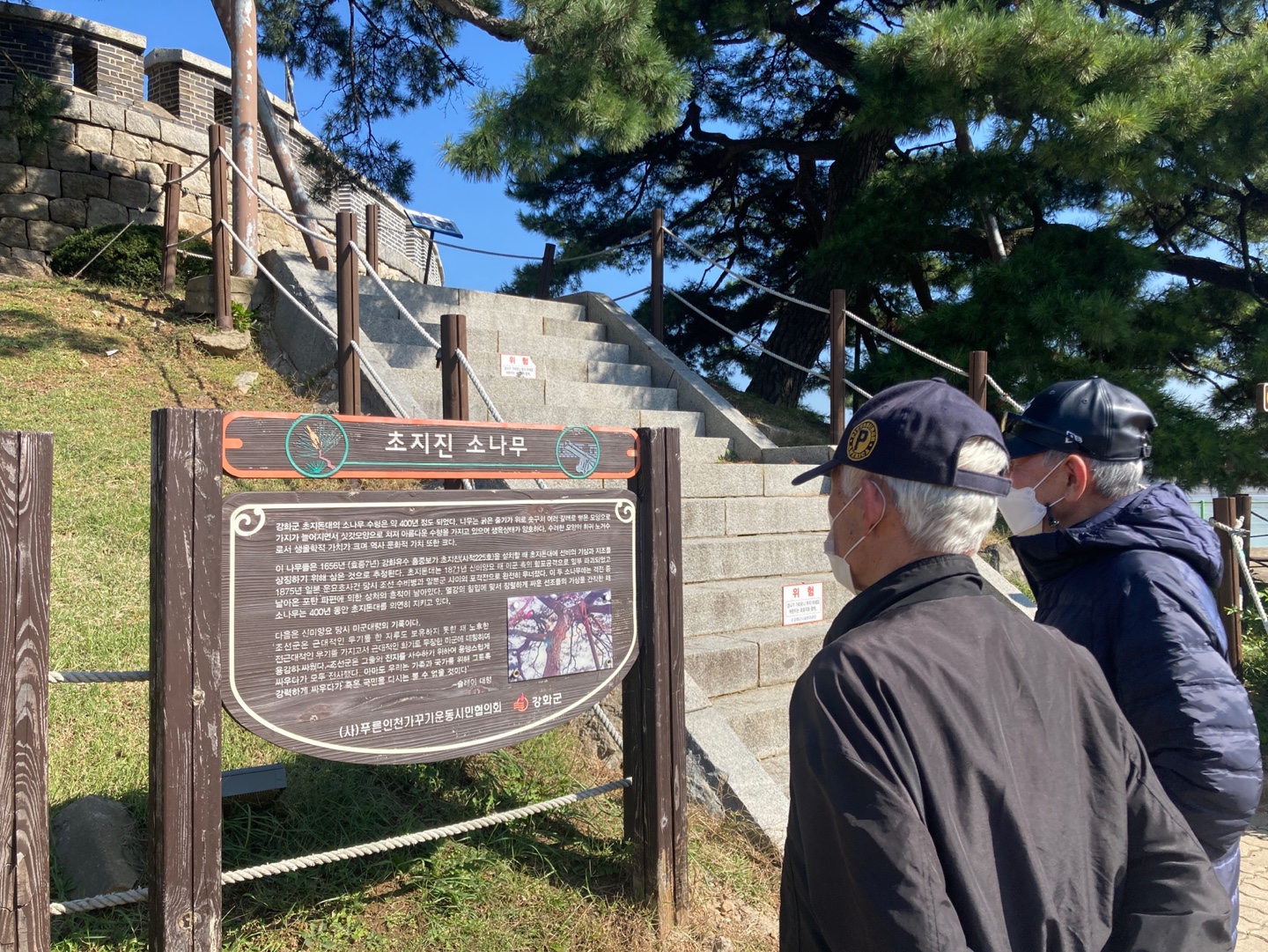 초지진에 도착해 사백 년 된 소나무를 바라봤습니다.