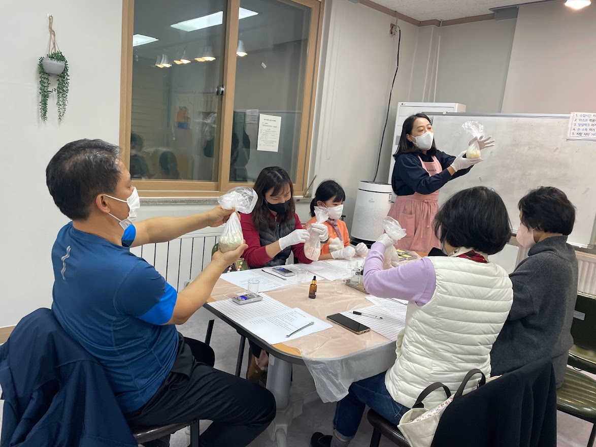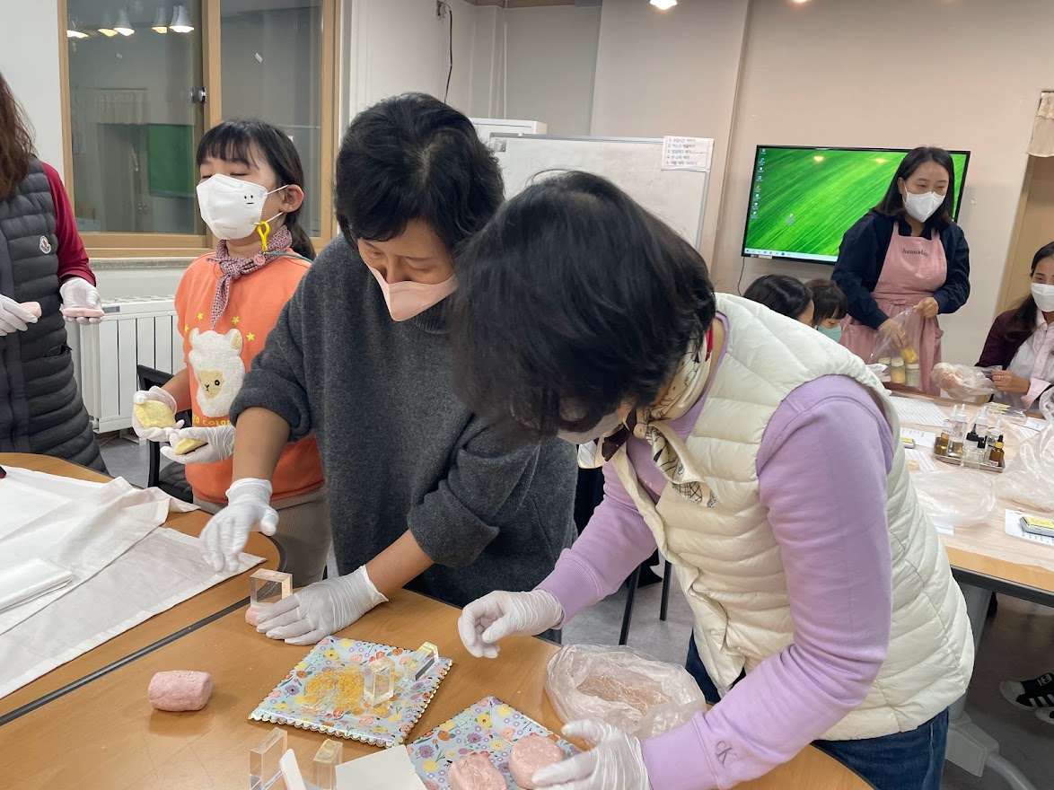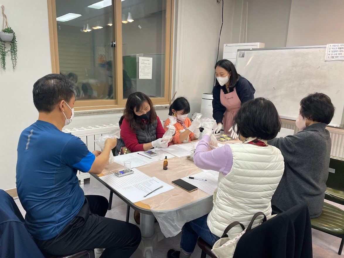주민들이 열심히 샴푸바를 만들면서 강사님께 질문도 많이 하셨고 동시에 친환경 제품에 대한 궁금했던 부분도 물어보셨습니다.