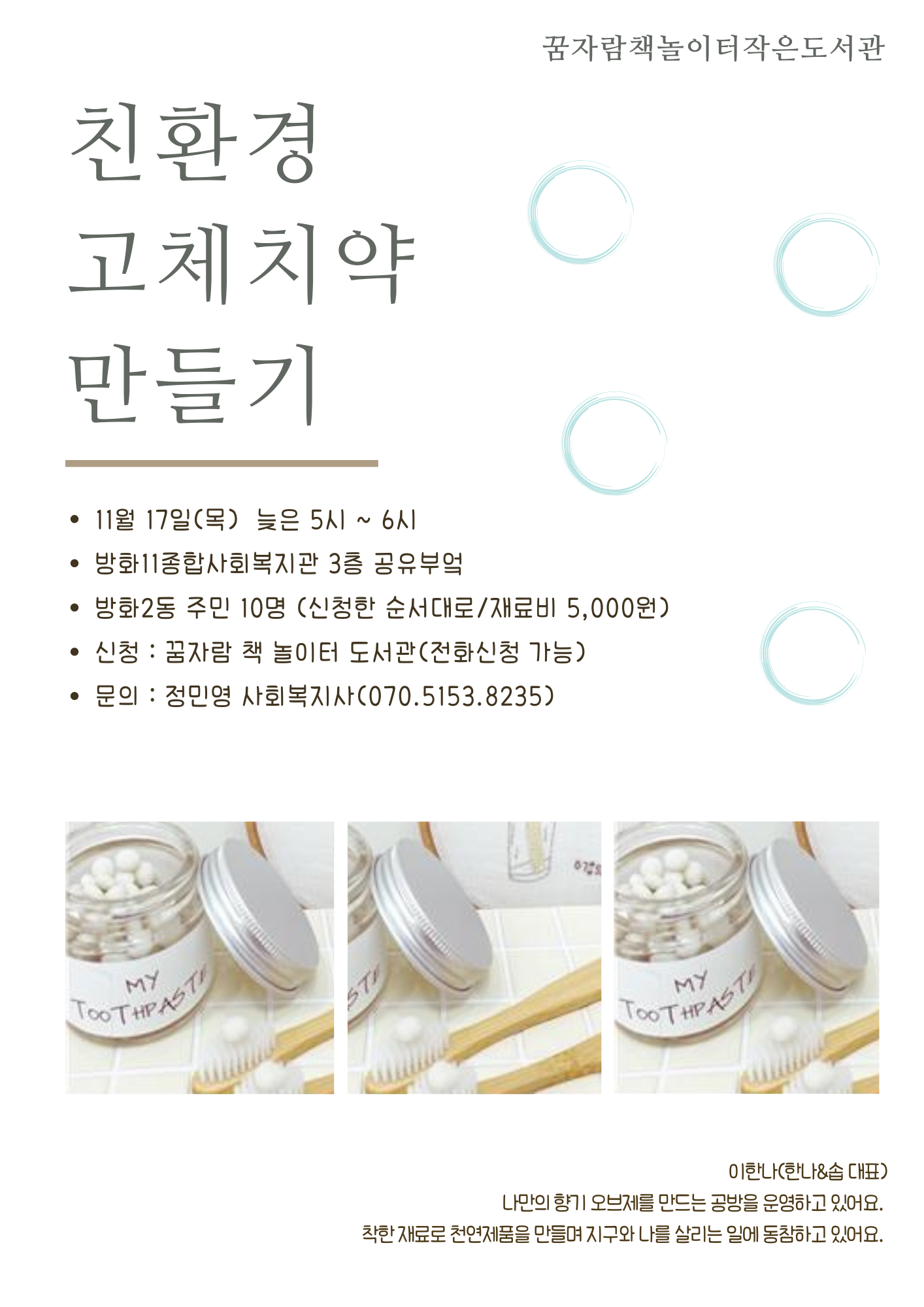 [꿈자람 책 놀이터] 친환경 고체치약 만들기 특강 진행
