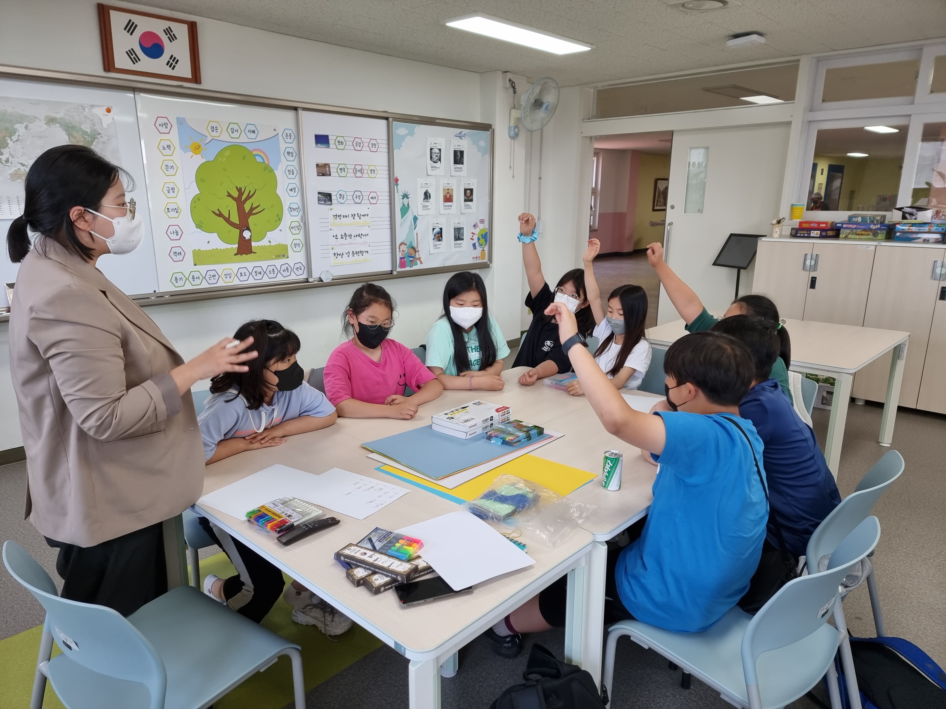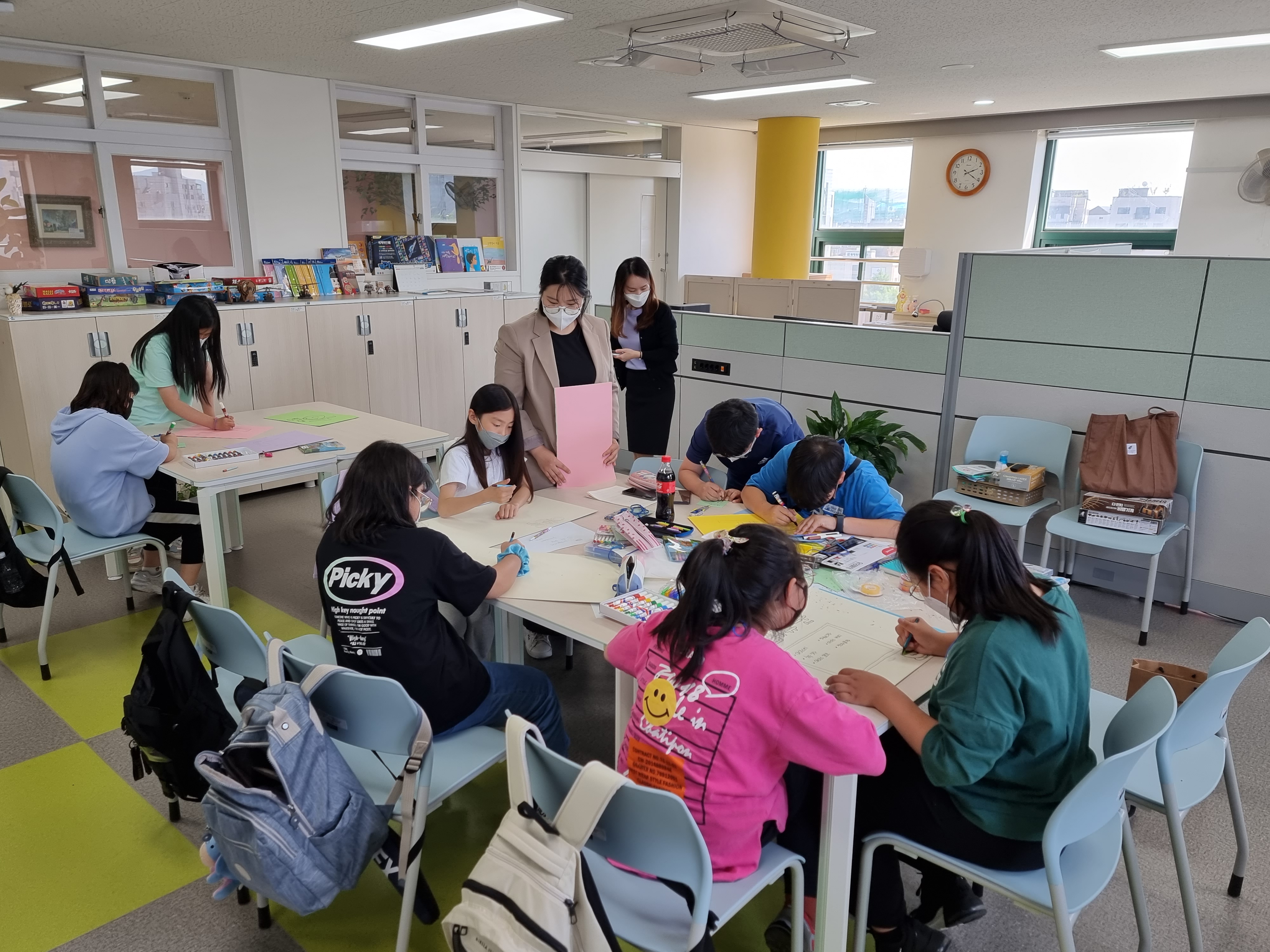 아이들이 모였습니다. 환경 강의도 아이들이 주체적으로 준비합니다. 역할을 나누었습니다. ① 강사님께 전화 드리기 ② 꾸미기, 이렇게 두 가지 팀으로 나누었습니다.