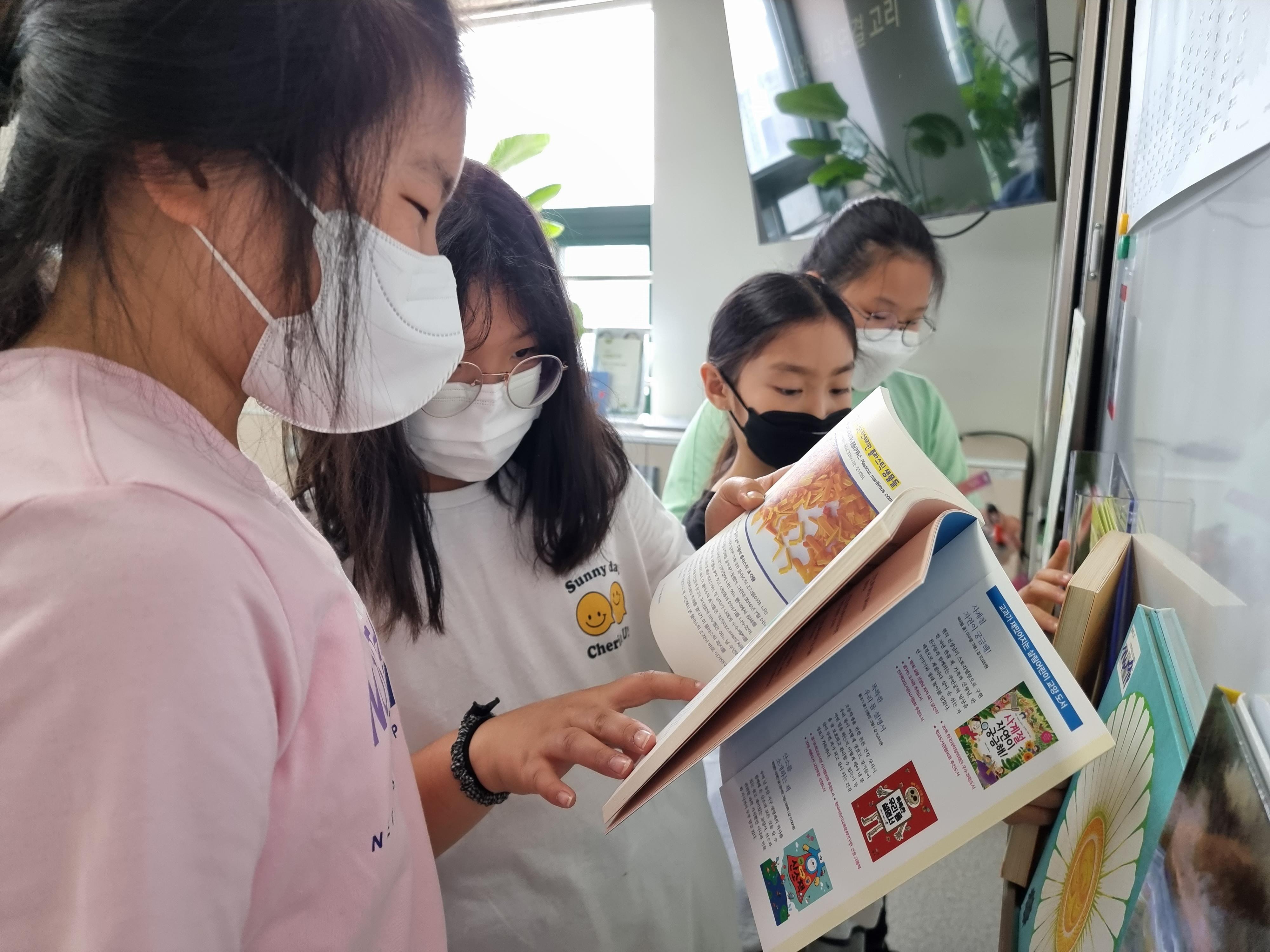 강사님께서는 환경과 관련한 여러 책을 가지고 오셨습니다. 아이들에게 많은 것을 알려주고 싶은 마음이 느껴졌습니다. 복지실 칠판에 쭉 전시했습니다. 아이들도 이리저리 책을 살피며 구경했습니다.