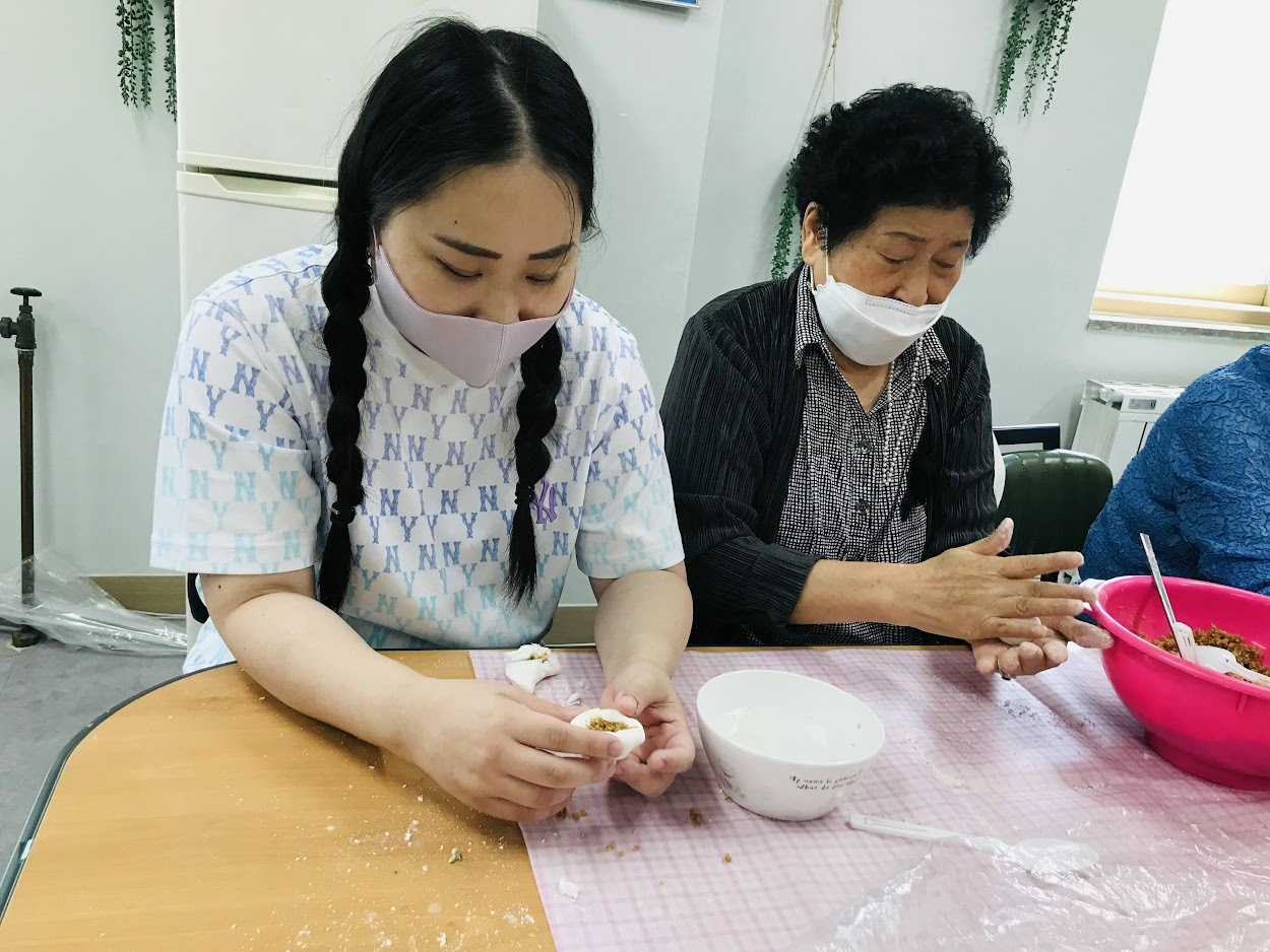 2019년에 함께 모여 송편을 만들고 나서 2년 만에 모이는 자리입니다. 그동안 혼자 있으면 웃을 일이 별로 없었는데 이렇게 같이 모여서 이야기 나누면서 잔치하니 웃을 일이 많아서 좋다고 하셨습니다.