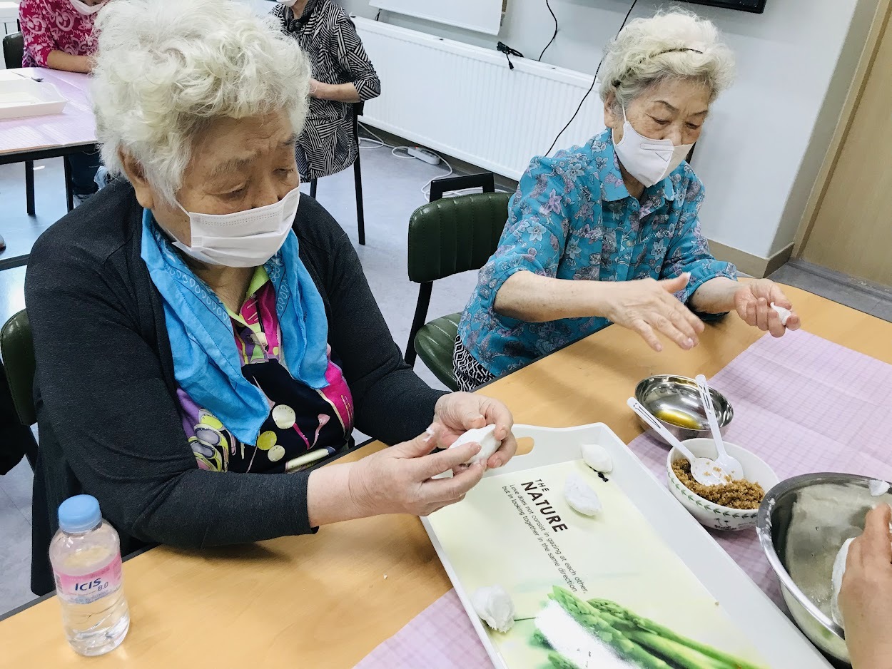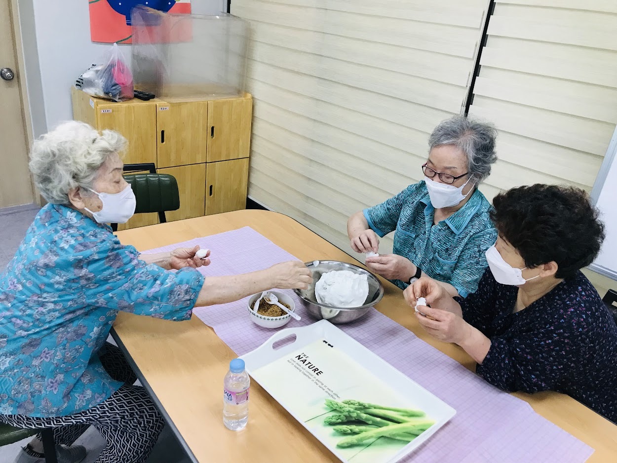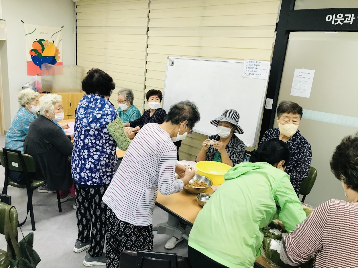 2019년에 함께 모여 송편을 만들고 나서 2년 만에 모이는 자리입니다. 그동안 혼자 있으면 웃을 일이 별로 없었는데 이렇게 같이 모여서 이야기 나누면서 잔치하니 웃을 일이 많아서 좋다고 하셨습니다.