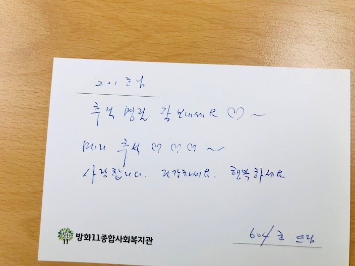 그냥 송편만 주면 쑥스러우니 추석 잘 보내라는 인사가 담긴 엽서와 함께 전하기로 했습니다.