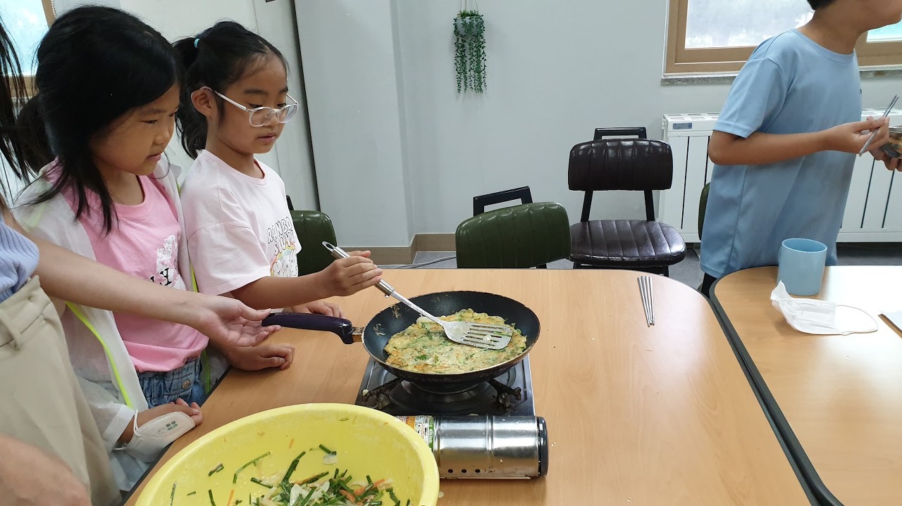 아이들도 선생님에게 배운 방법을 따라서 직접 전을 구워보기도 합니다.