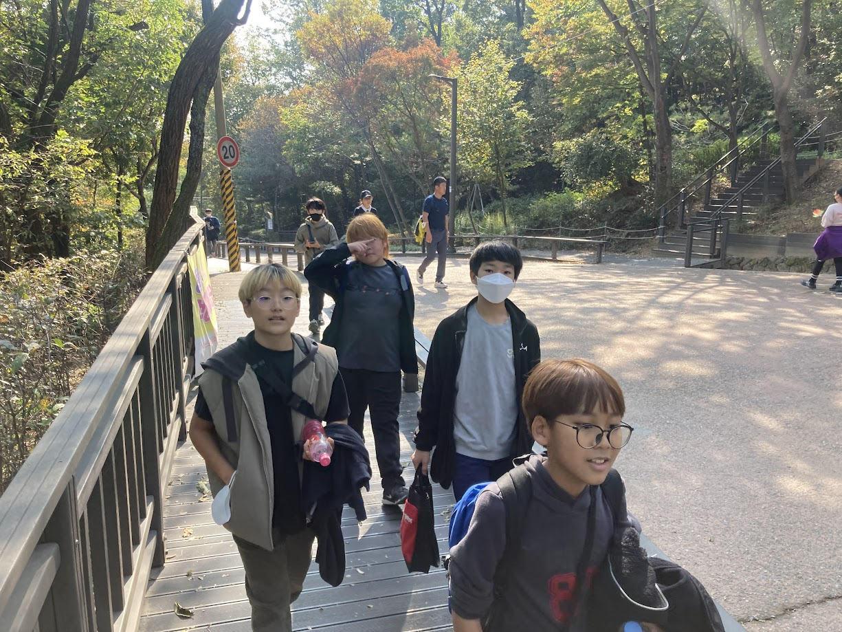 아이들이 급하게 이야기하다가 결국 목적지를 인근의 개화산으로 바꿨습니다.