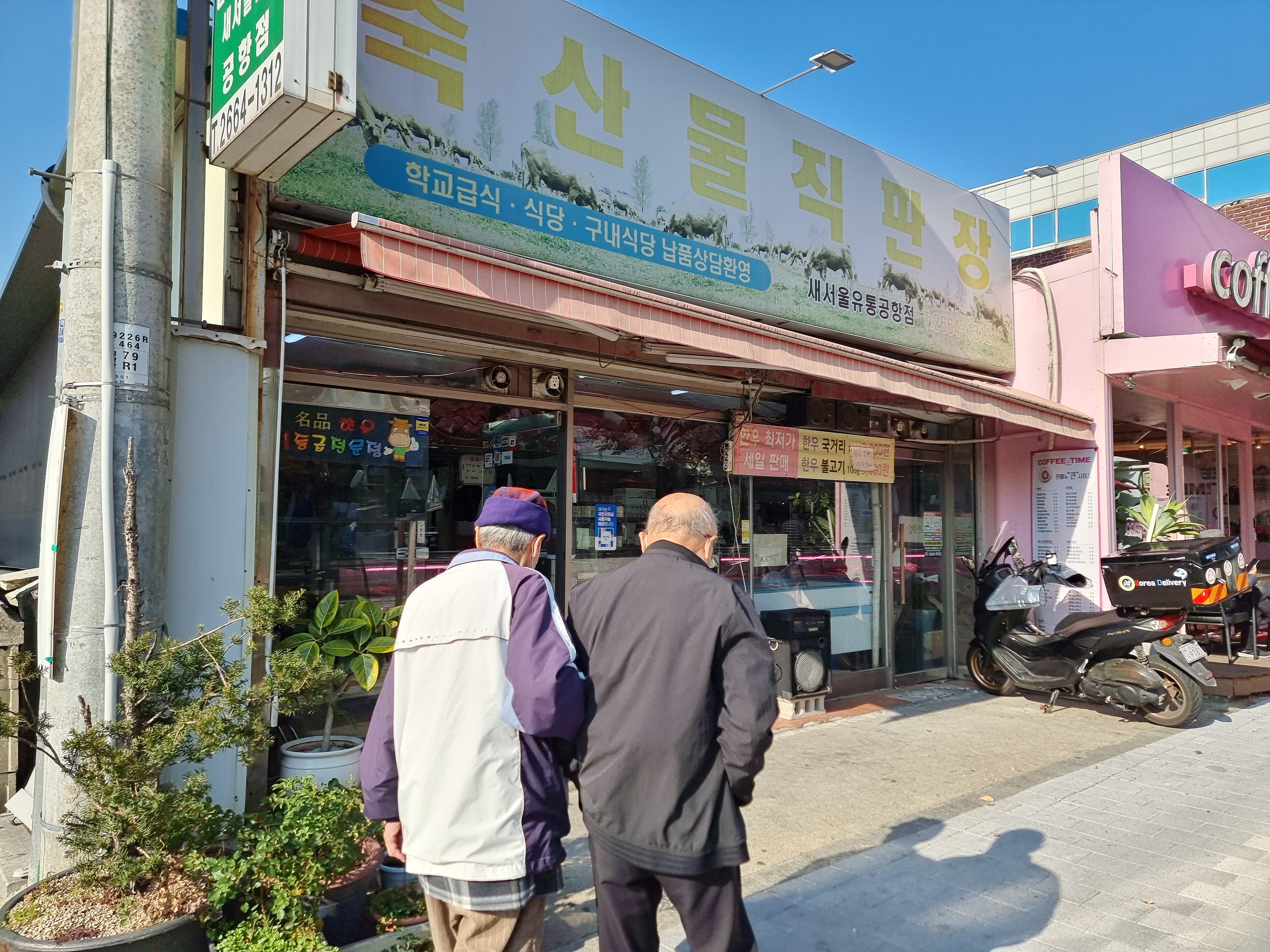 정육점을 모시고 함께 갔습니다. 동네 정육점이 어디에 있는지 주차를 어떻게 하면 되는지 알려주셨습니다. 정육점에 들어갈 때도 주문할 때도 두분이 먼저 하시도록 한걸음 뒤로 물러났습니다. 사태는 재고가 없어 앞다리로 샀습니다.
