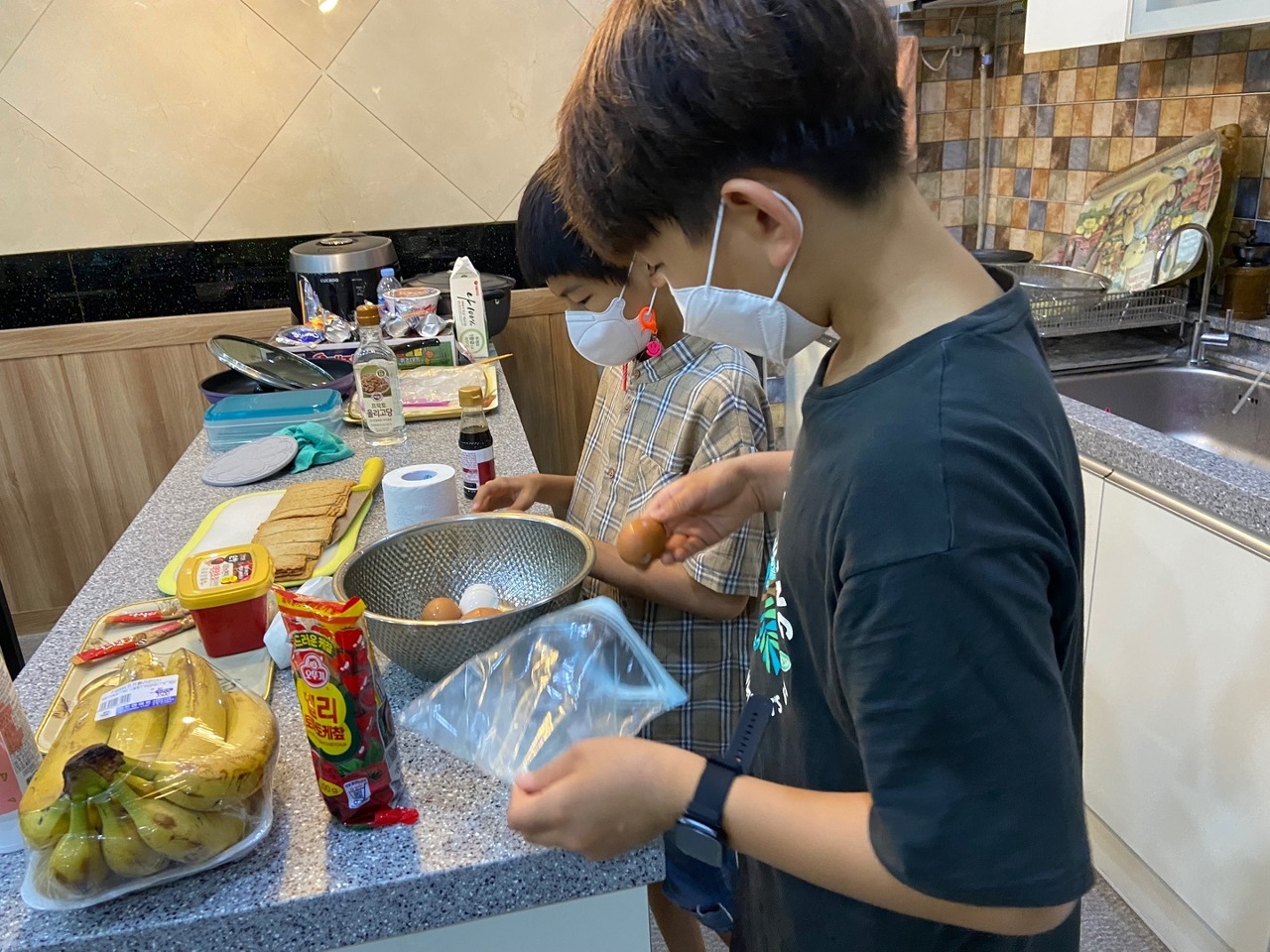 우리끼리 요리하기입니다. 집에서 부모님과 요리를 하긴 하지만 처음부터 끝까지 본인들이 한 적이 없어