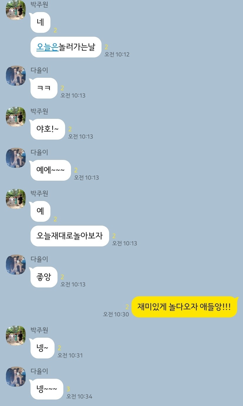 아직 남아있는 단체방에서는 저들끼리 안부 주고받거나 소소한 이야기 나누며 한 여름 함께 즐겼던 추억을 잊지 않음을