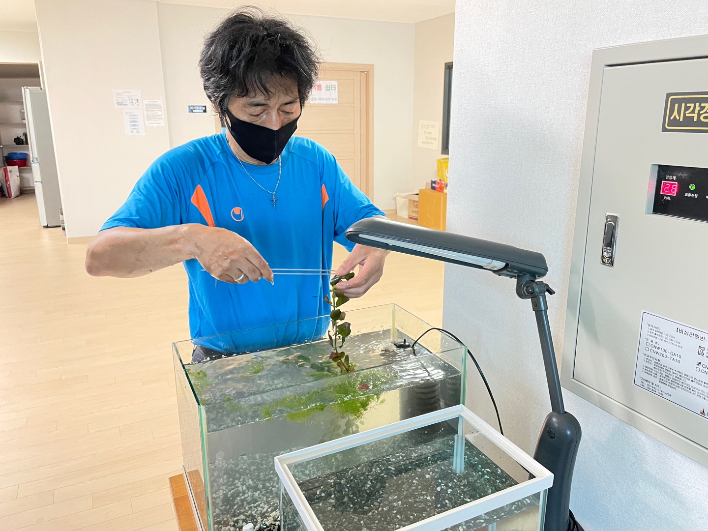모임 참여자 각자 집에 어항 설치가 시작됩니다. 그러나 다들 한번 본 내용이라 자신이 없다고 하십니다.