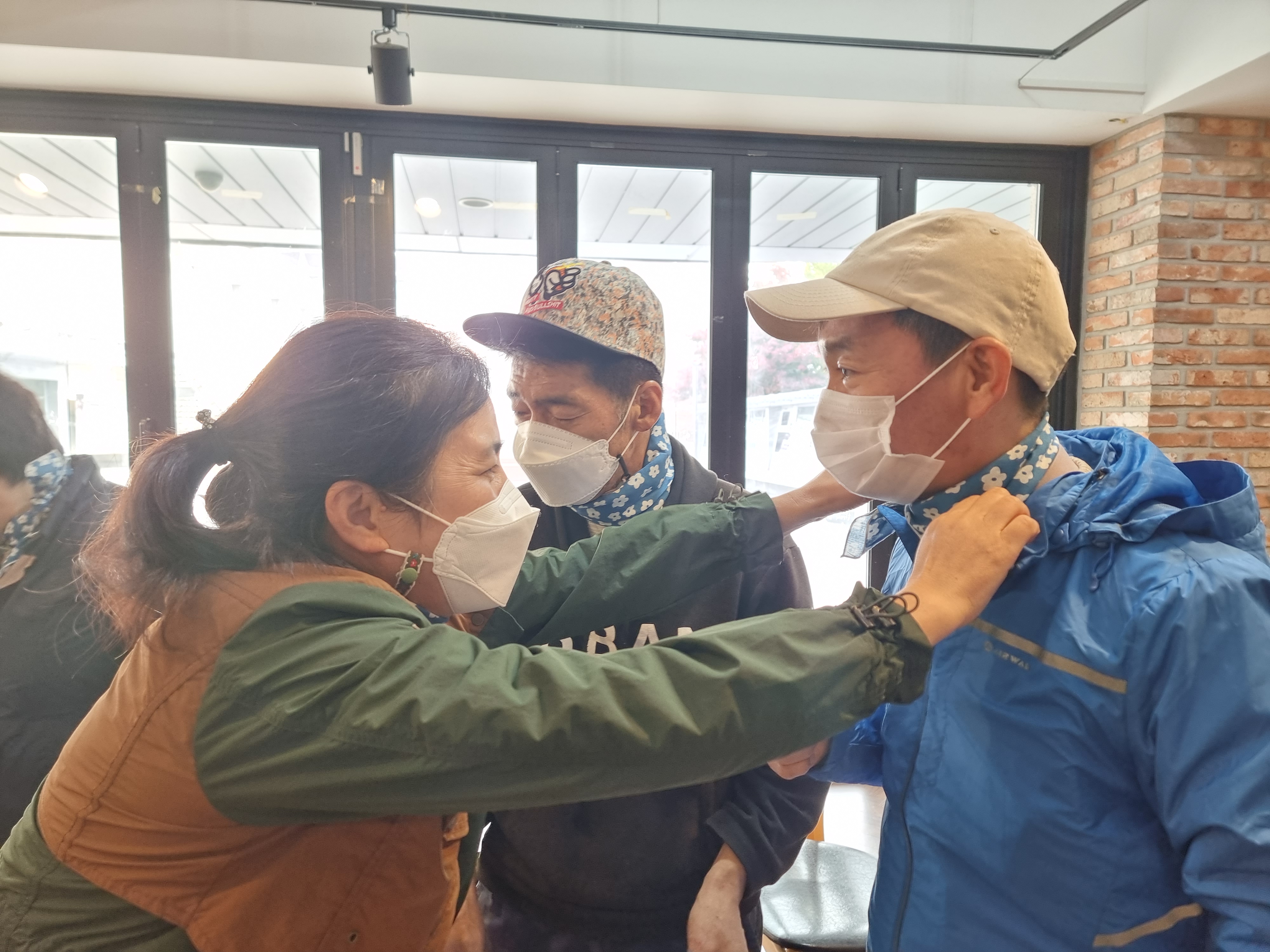 '우리 모임' 이라는 생각만 드는 것이 아니라 다 함께 목에 같은 스카프를 두루니 눈으로도 보입니다.