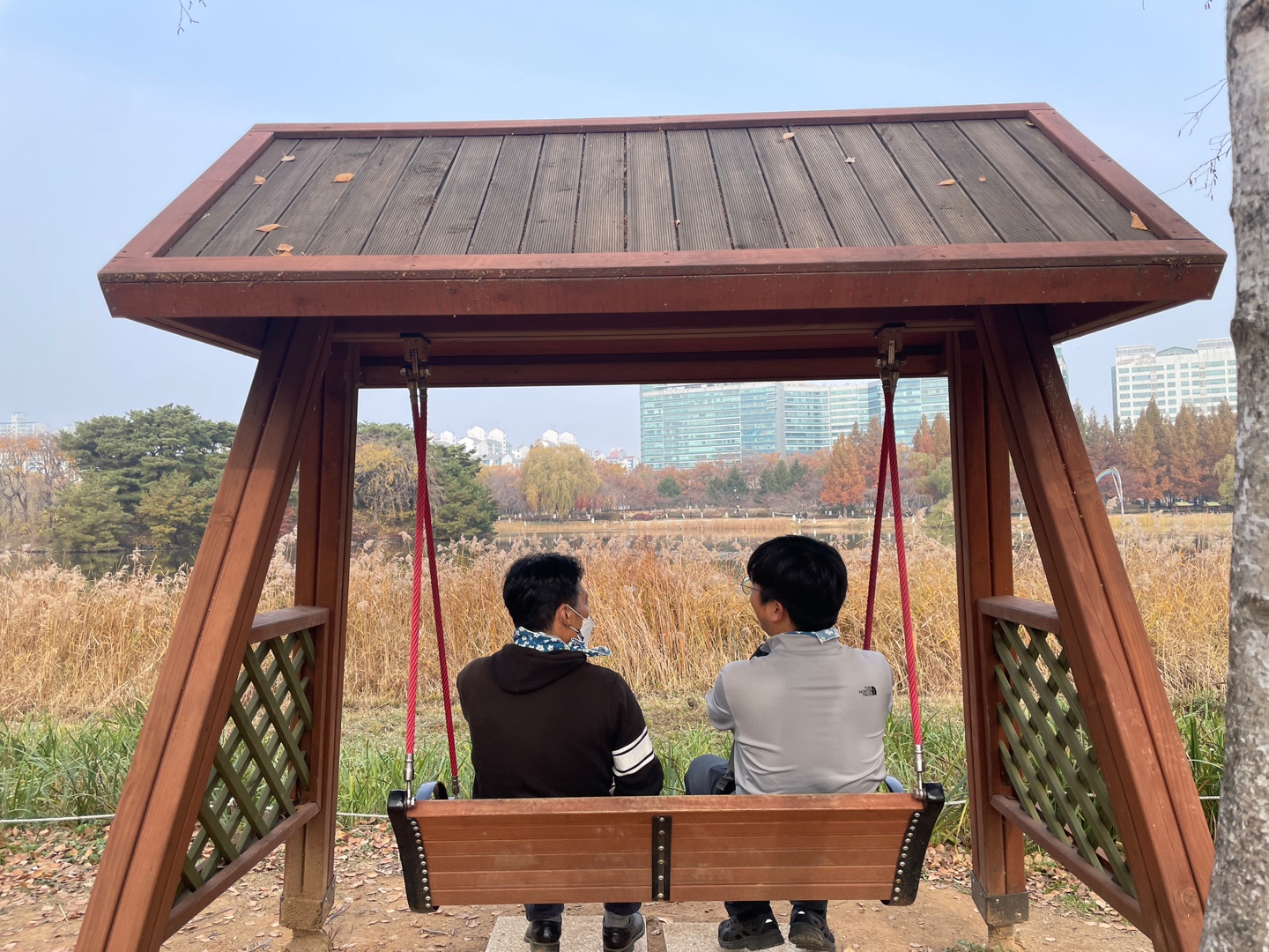 호수공원에서 뜻밖에 시간을 보냈습니다. 뜻하지 않은 행복에 모두가 웃은 추억입니다.