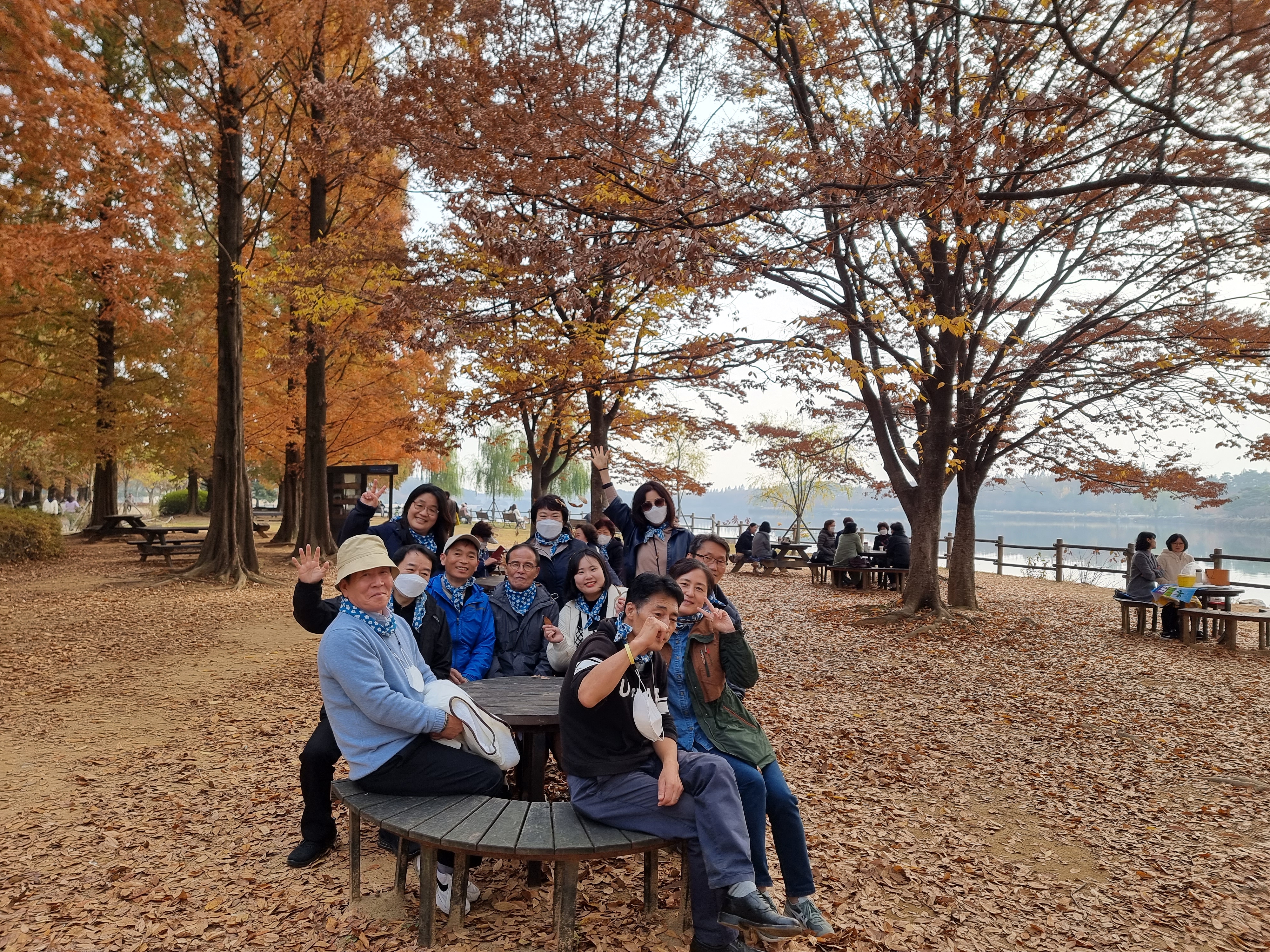'우리 모임' 이라는 생각만 드는 것이 아니라 다 함께 목에 같은 스카프를 두루니 눈으로도 보입니다.