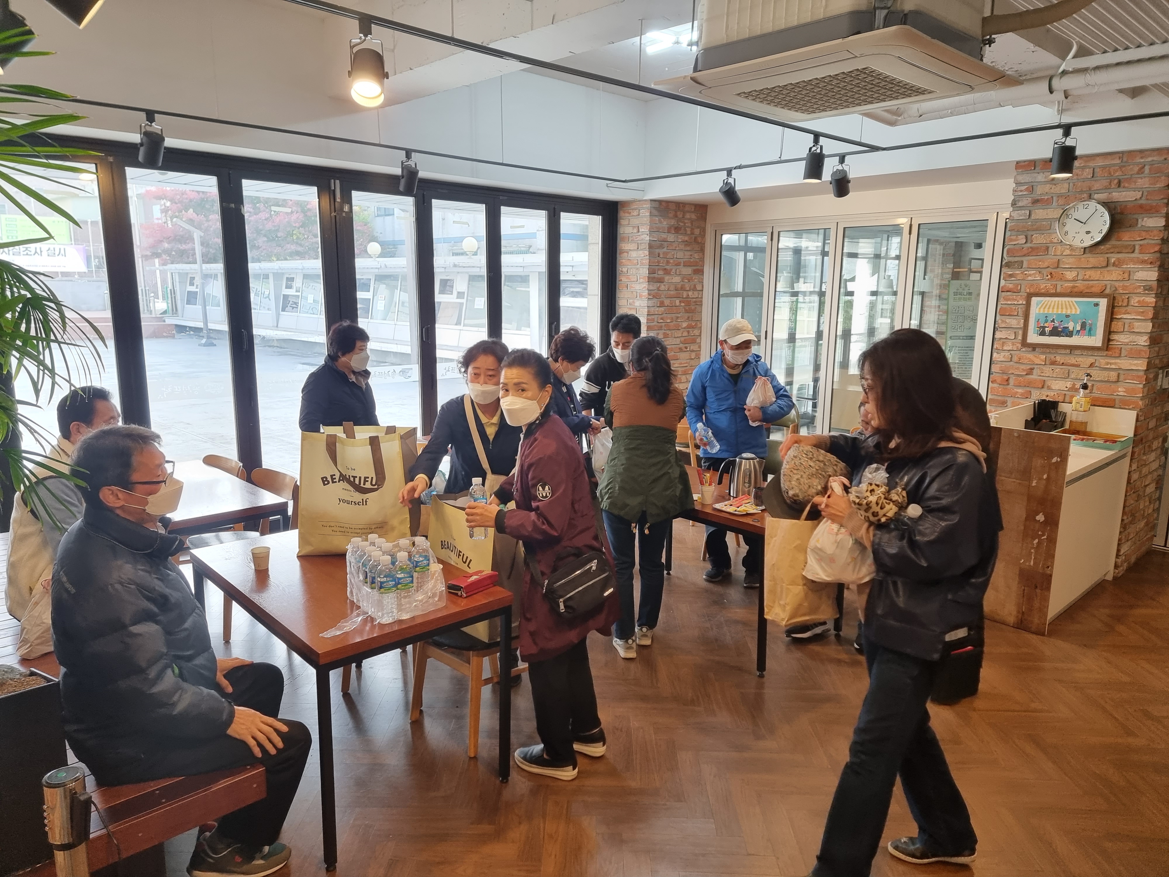 나들이 출발하기 전 주민센터에서 모였습니다.