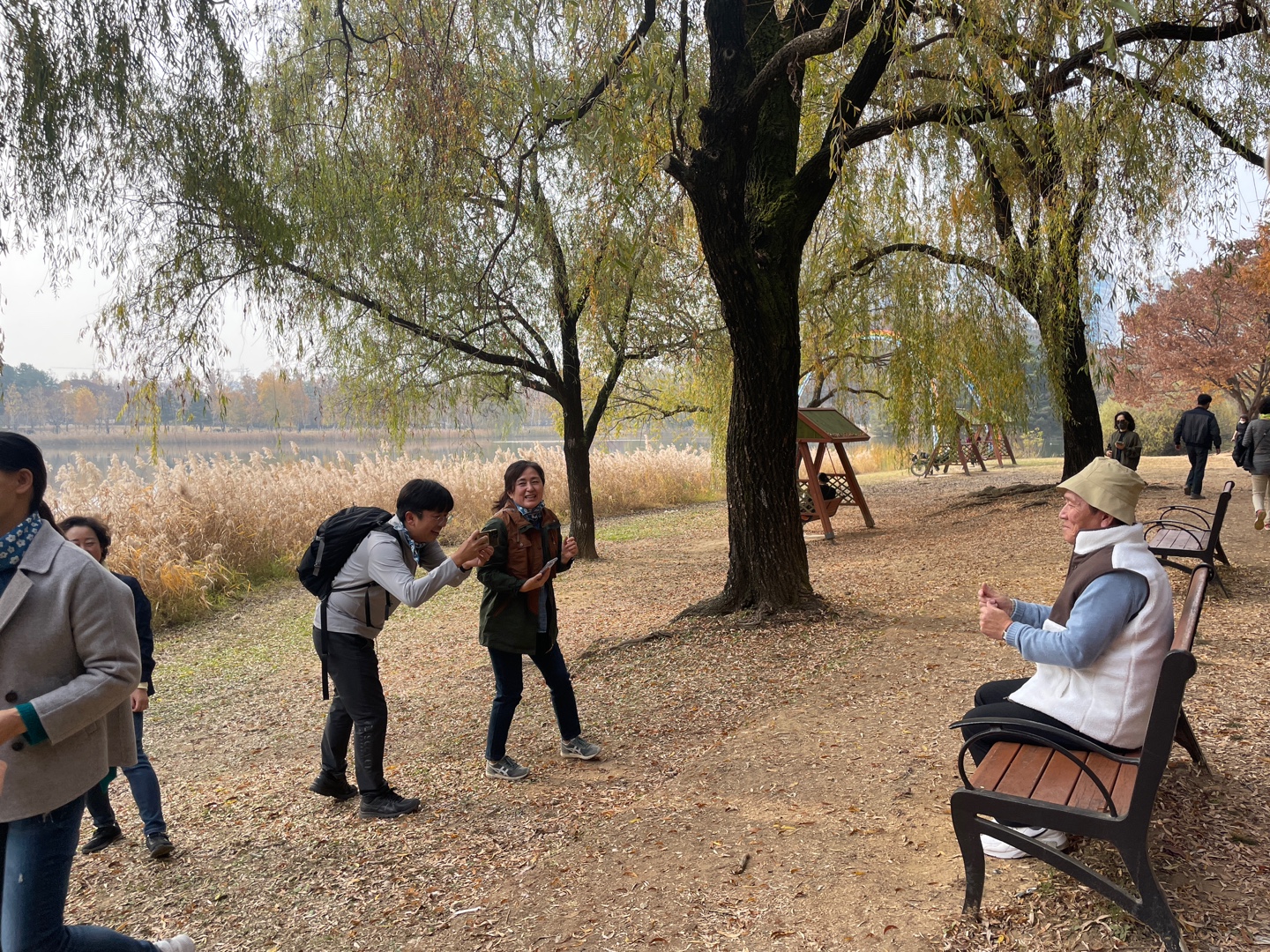 호수공원에서 뜻밖에 시간을 보냈습니다. 뜻하지 않은 행복에 모두가 웃은 추억입니다.