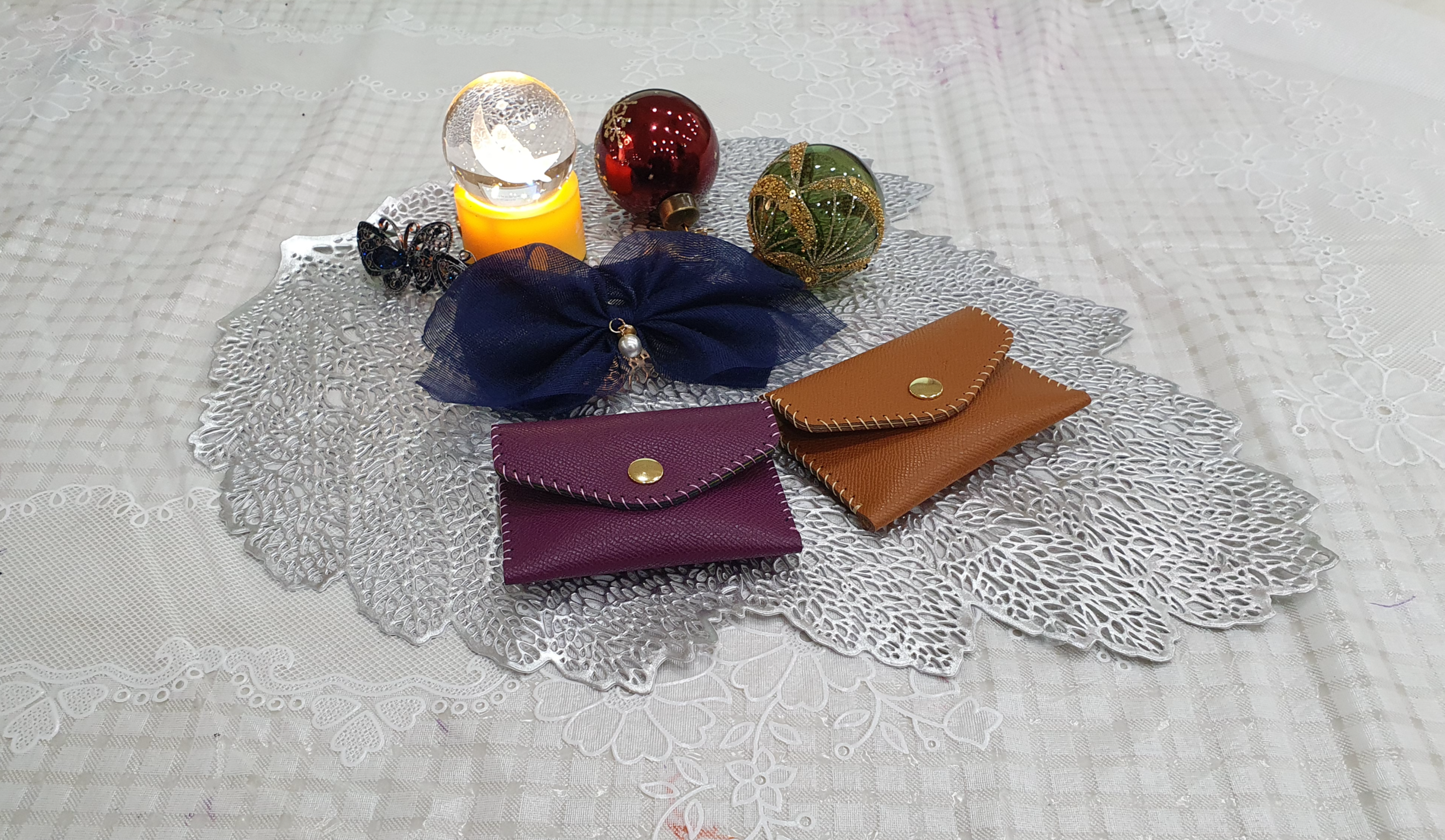 한 분은 책상 위에 완성한 가죽 지갑을 올려 두셨습니다.
