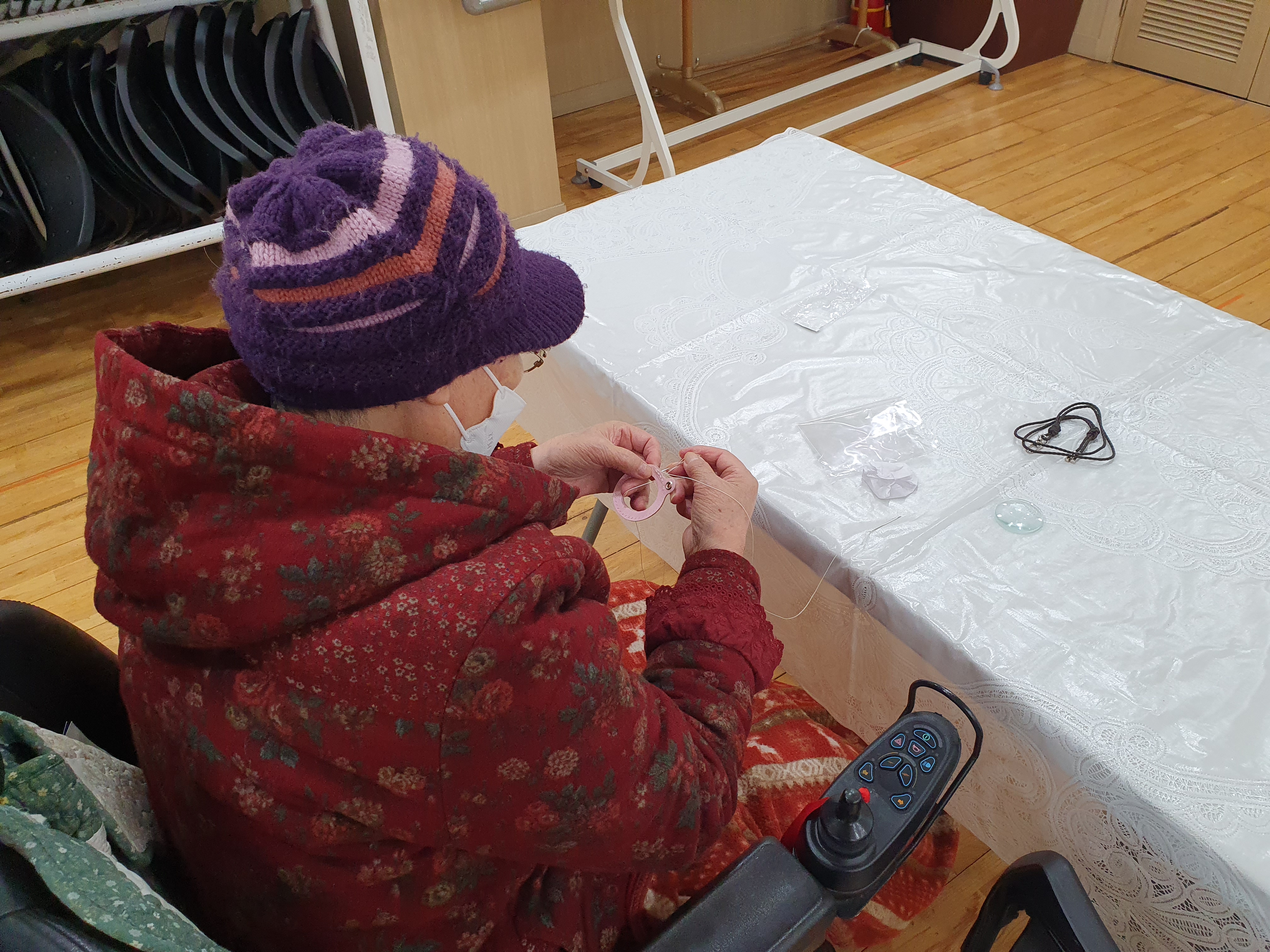 동그랗게 모여 바느질하는 법을 배우고 도움이 필요한 사람에게 알려주기도 합니다.