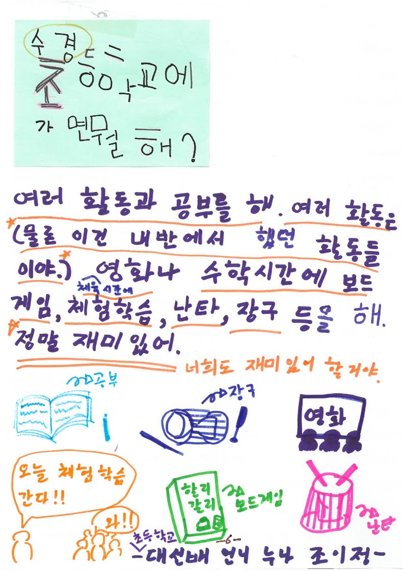 6학년 때는 무엇을 하는지 미리 알려주기도 했습니다.