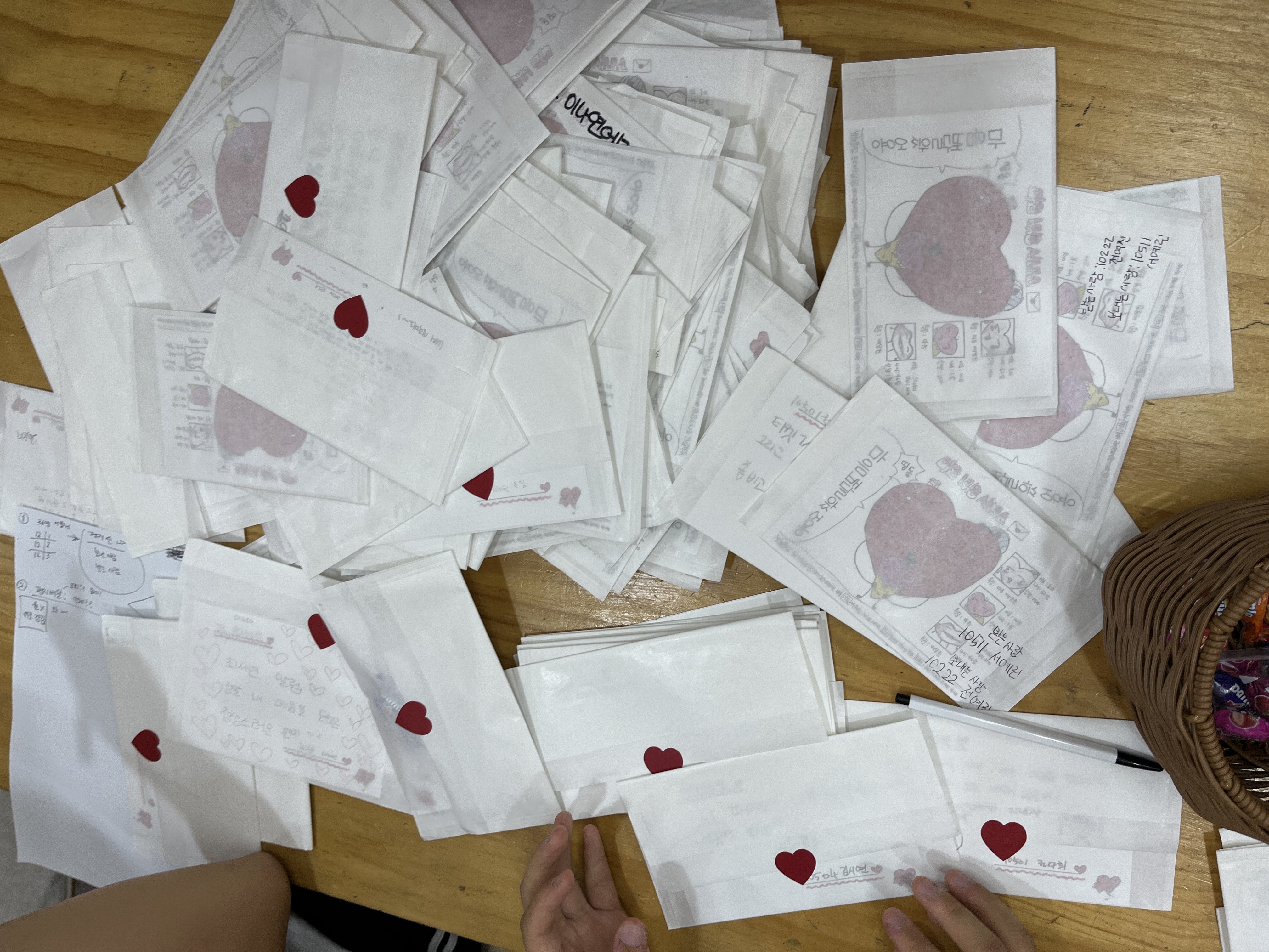 그리고 또래 상담동아리 친구들이 편지를 전해줘서 재밌었어요.