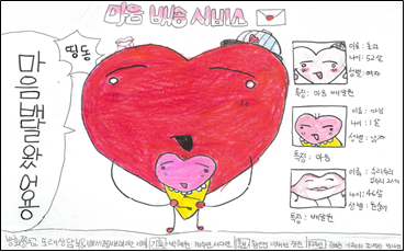 “와 그럼 우리가 만든 캐릭터 엽서에 전교생이 편지를 쓰는 거야? 그 엽서에 마음을 담는 거야?”
