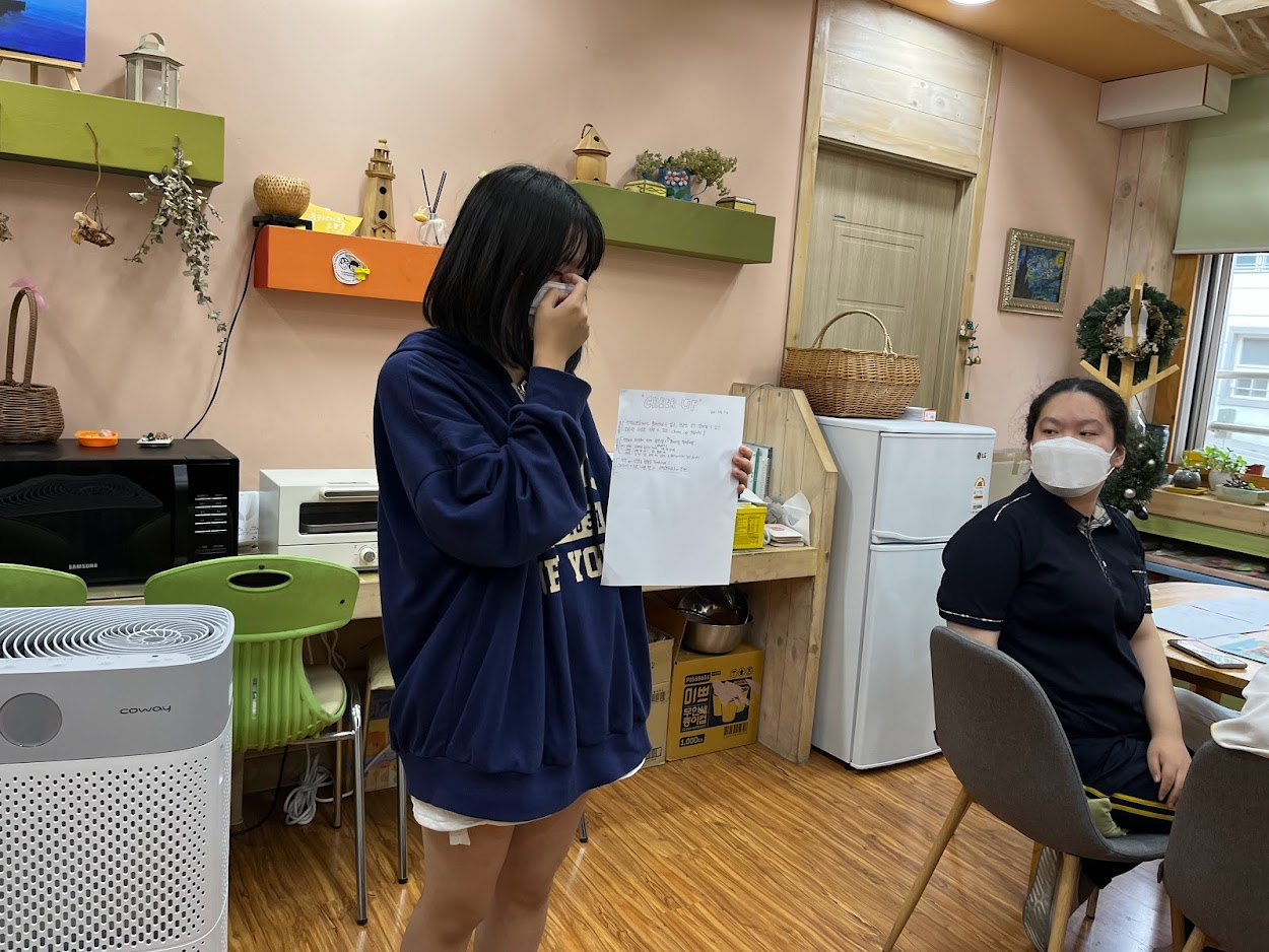 -cheer up 인사캠페인 이후 전보다는 서로 응원하고 격려하는 말을 많이 하는 것 같았다. 힘든일이 있을 때 먼저 다가가서 위로해주는 아이들의 모습을 몇몇 보았기 때문이다.
