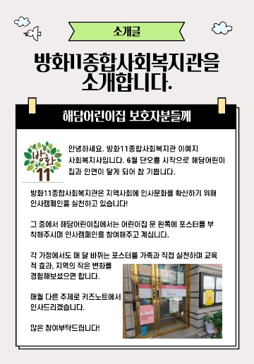 방화11종합사회복지관에서는 가족,친구,이웃과 인사하자는 주제로