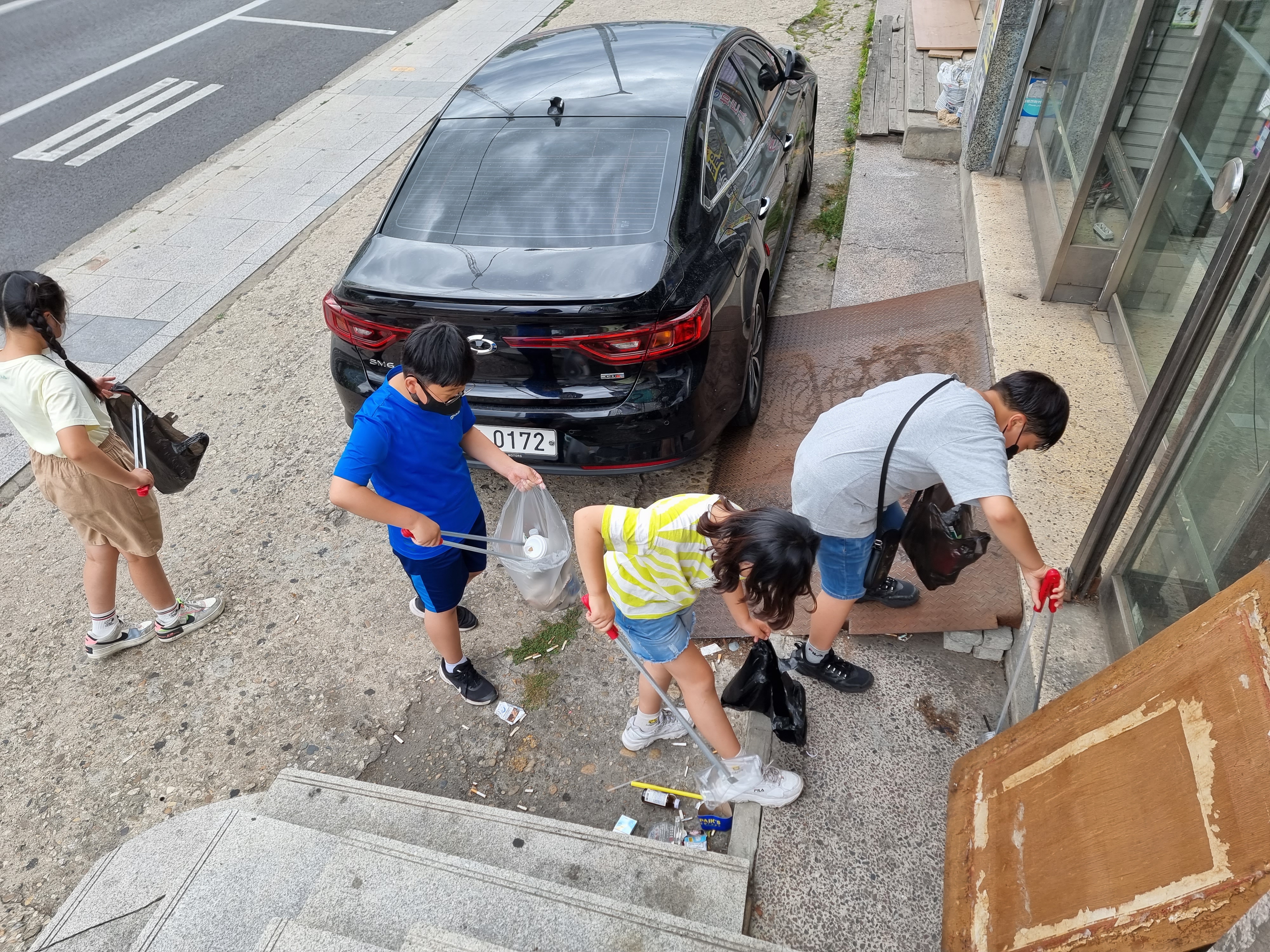 학교 안에 쓰레기는 생각보다 부피가 작고 많이 없었습니다. 학교 밖에 나가기로 했습니다. 두 팀으로 나누었습니다. 한 팀은 송정역 주변으로, 한 팀은 농협과 롯데리아 주변으로 가기로 했습니다. 쓰레기가 많습니다. 특히 담배꽁초가 많습니다. 어른들은 왜 담배꽁초를 길에 버리는지 속상했습니다. 땀을 뻘뻘 흘리며 열심히 청소했습니다. 길을 지나다가 칭찬해 주시는 어른들도 계셨습니다.