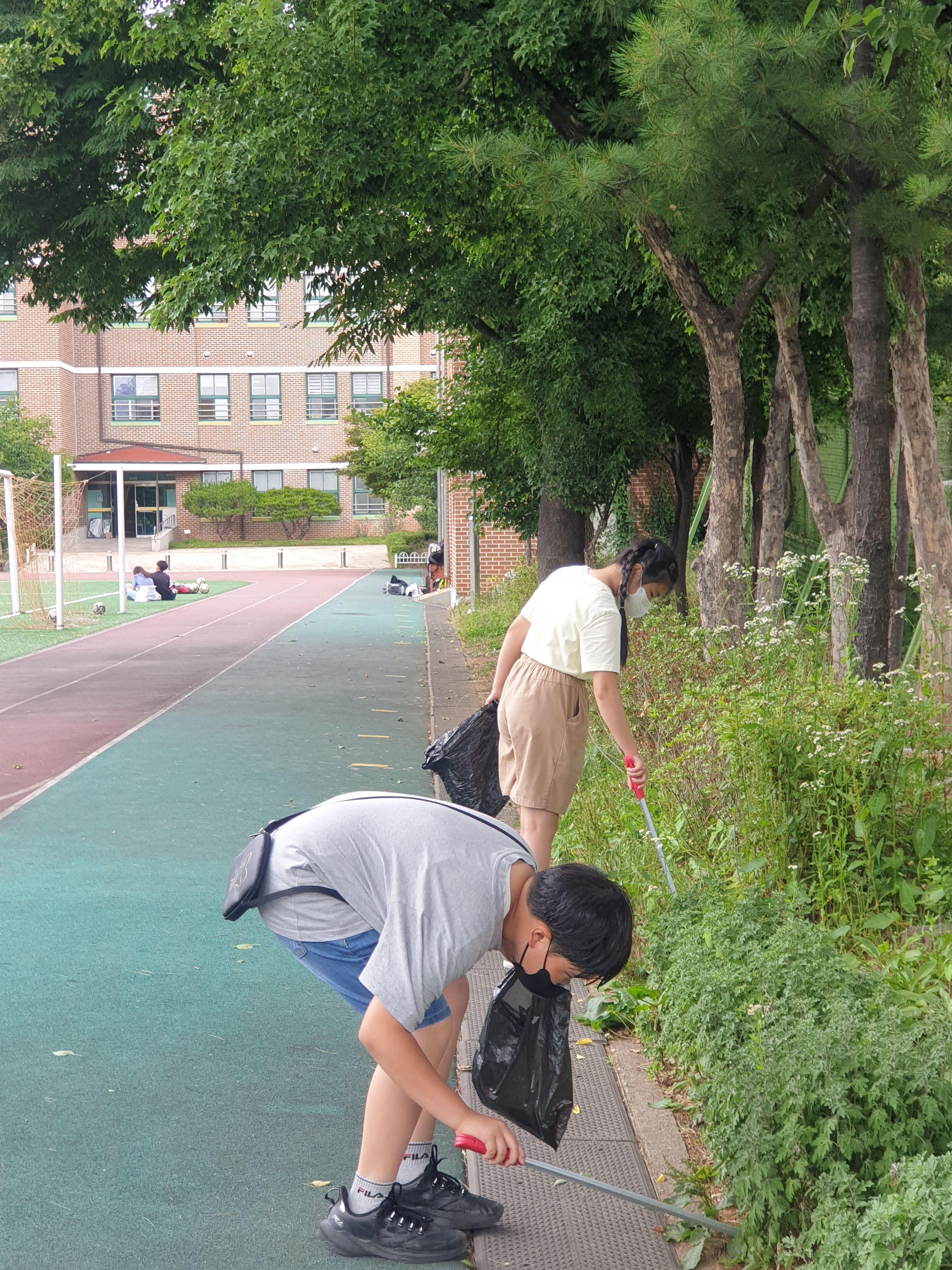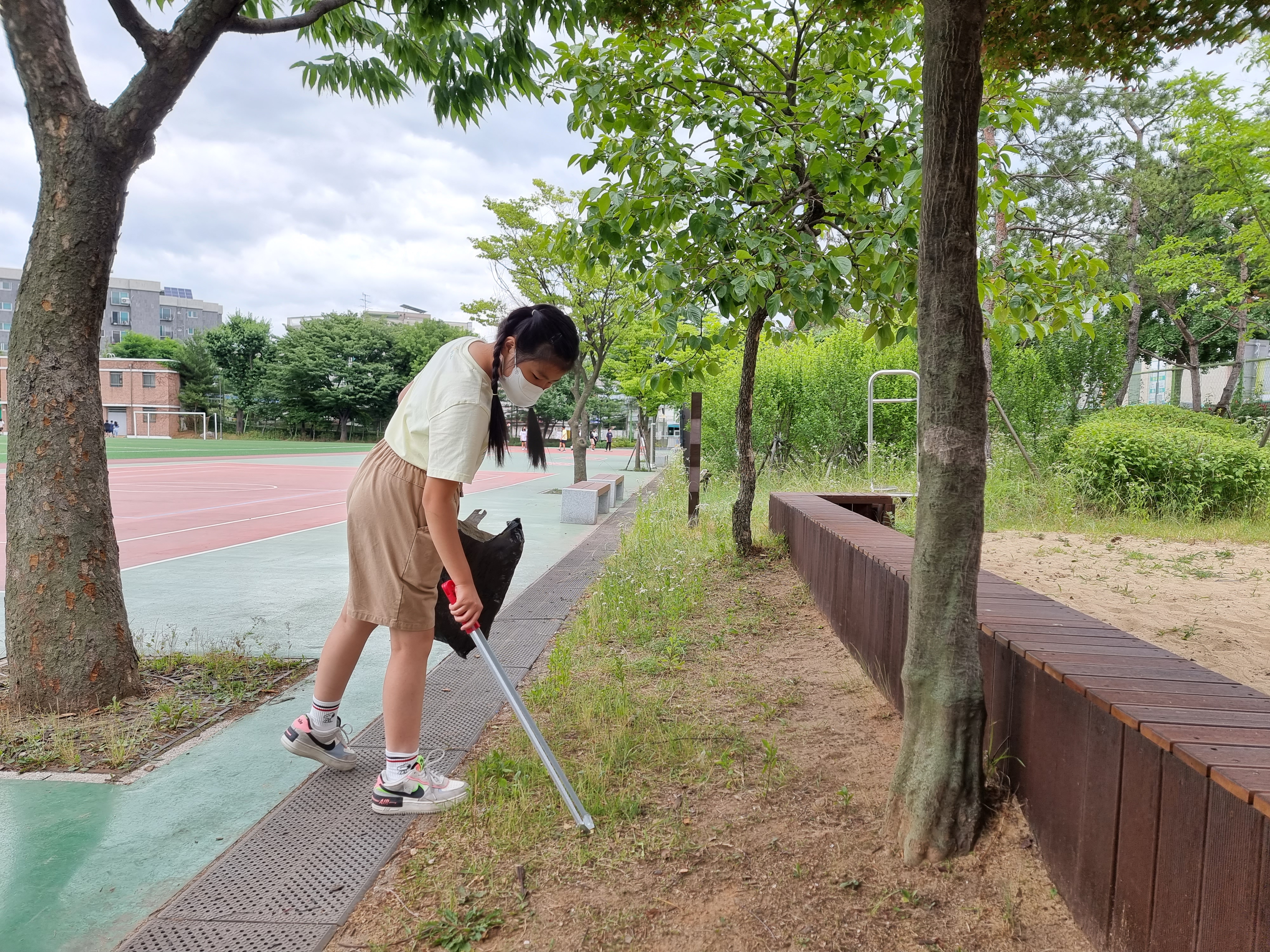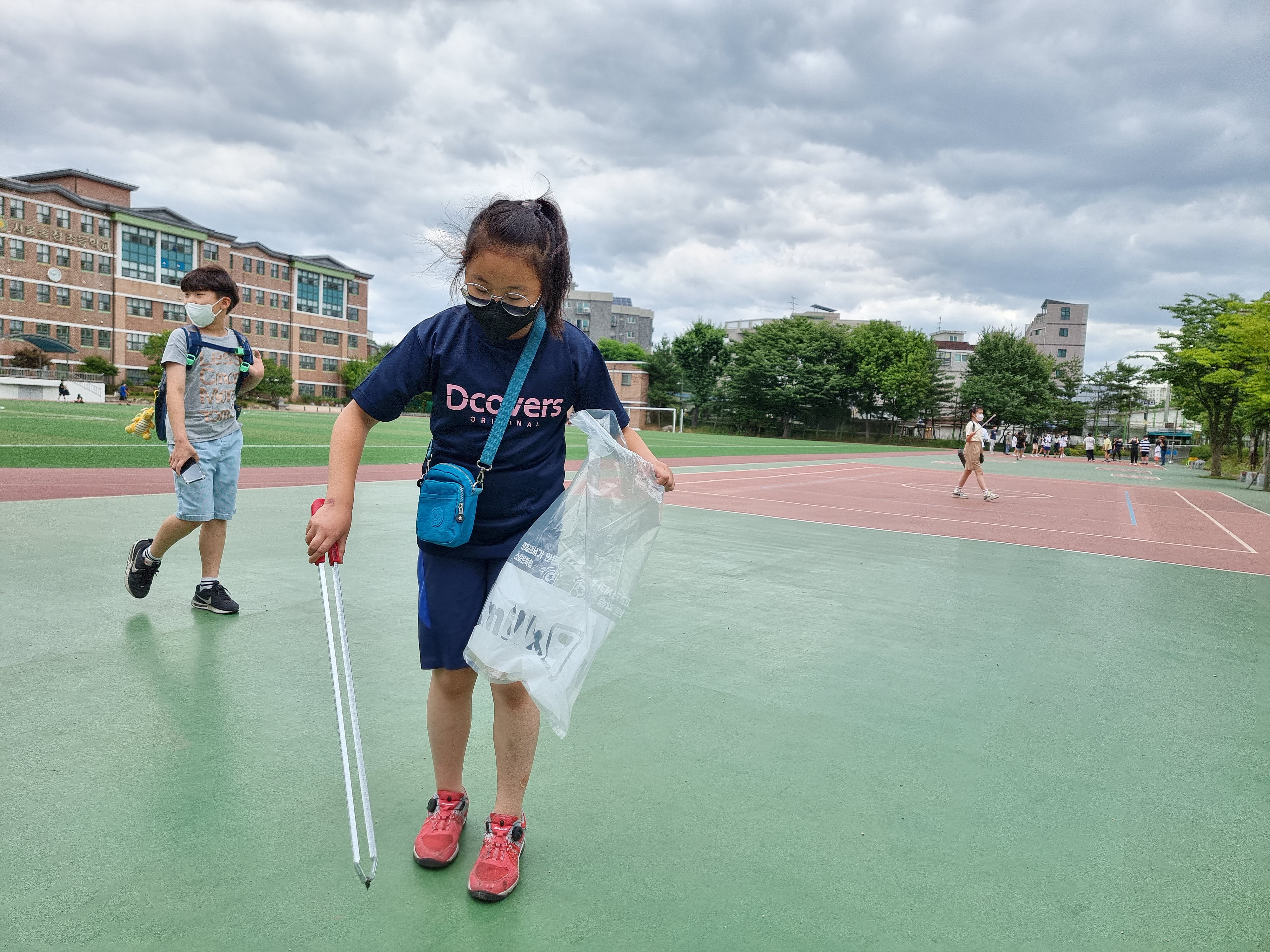 다음 날, 환경동아리 8명이 모였습니다. 아이들 열정이 대단합니다. 당장이라도 운동장에 뛰어나갈 기세입니다. 준비를 마치고 나섰습니다. 학교 구석구석을 다니며 쓰레기를 주웠습니다. 운동장에 있는 다른 아이들도 무얼 하는지 묻습니다. 환경동아리는 자랑스럽게 플로깅 활동이라고 소개했습니다.