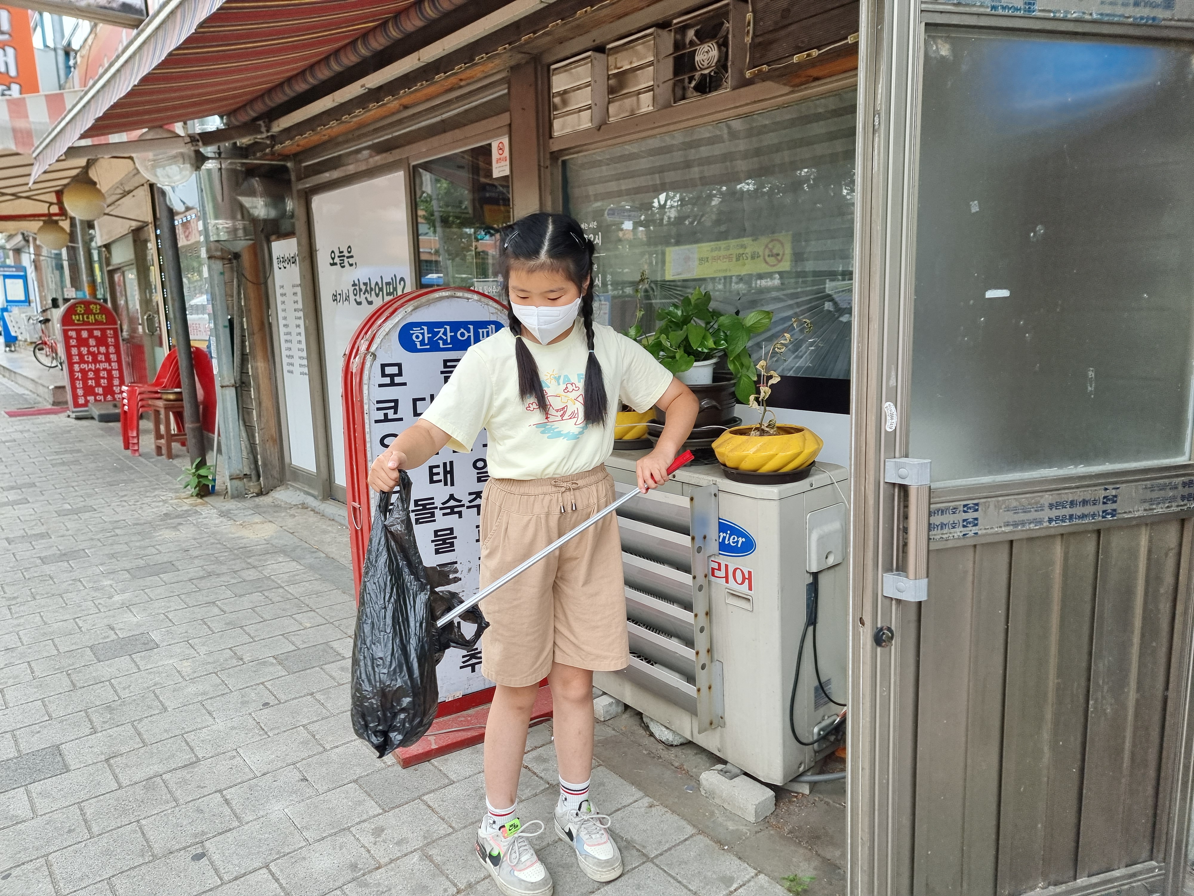 학교 안에 쓰레기는 생각보다 부피가 작고 많이 없었습니다. 학교 밖에 나가기로 했습니다. 두 팀으로 나누었습니다. 한 팀은 송정역 주변으로, 한 팀은 농협과 롯데리아 주변으로 가기로 했습니다. 쓰레기가 많습니다. 특히 담배꽁초가 많습니다. 어른들은 왜 담배꽁초를 길에 버리는지 속상했습니다. 땀을 뻘뻘 흘리며 열심히 청소했습니다. 길을 지나다가 칭찬해 주시는 어른들도 계셨습니다.