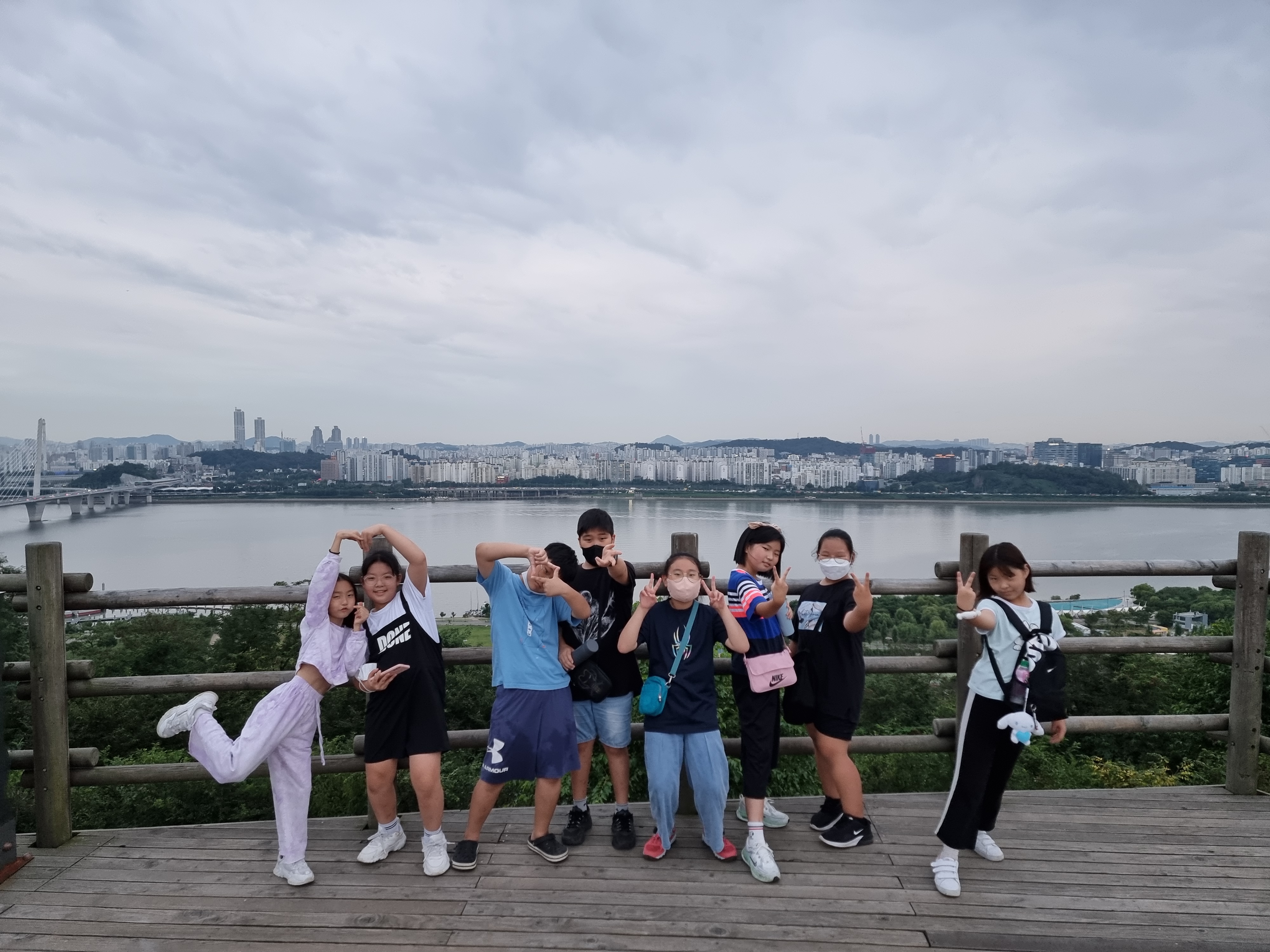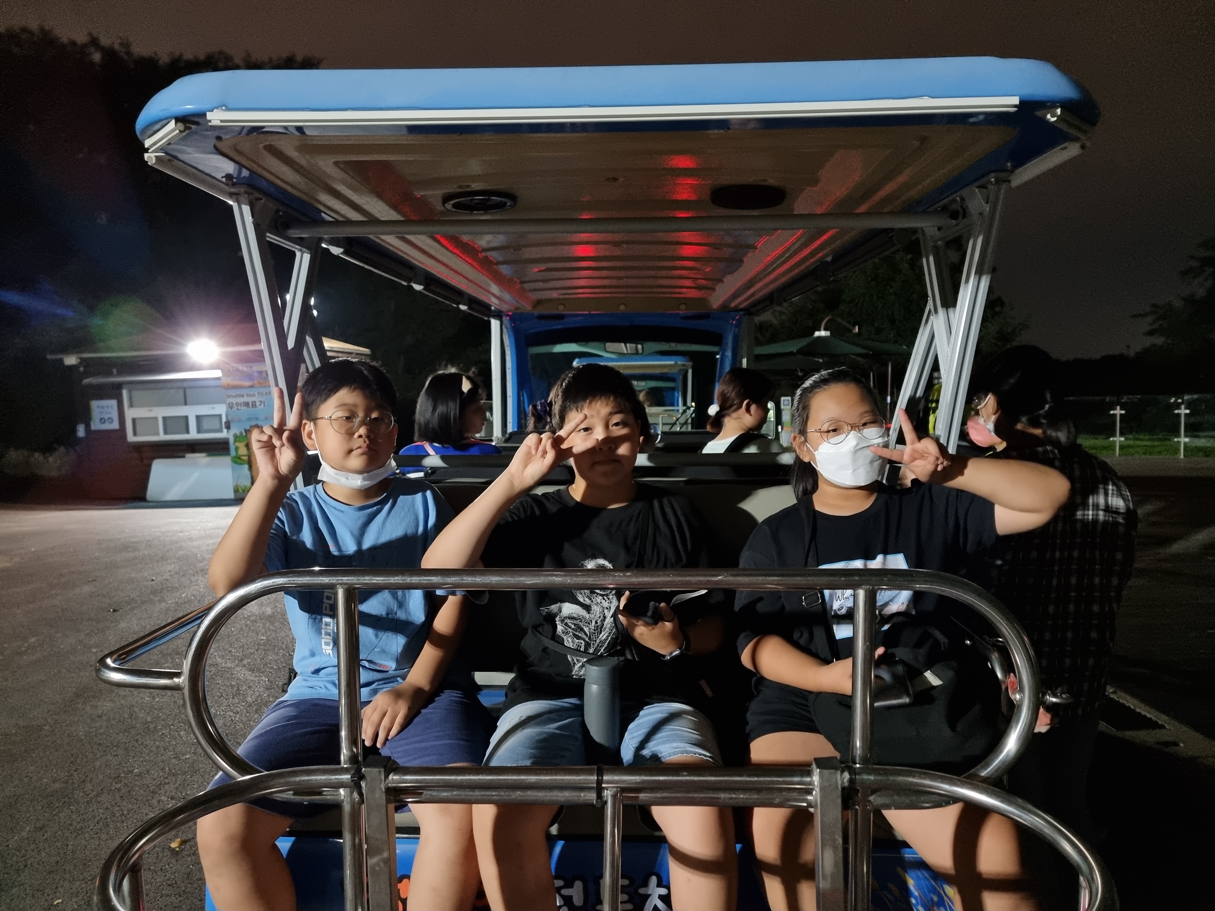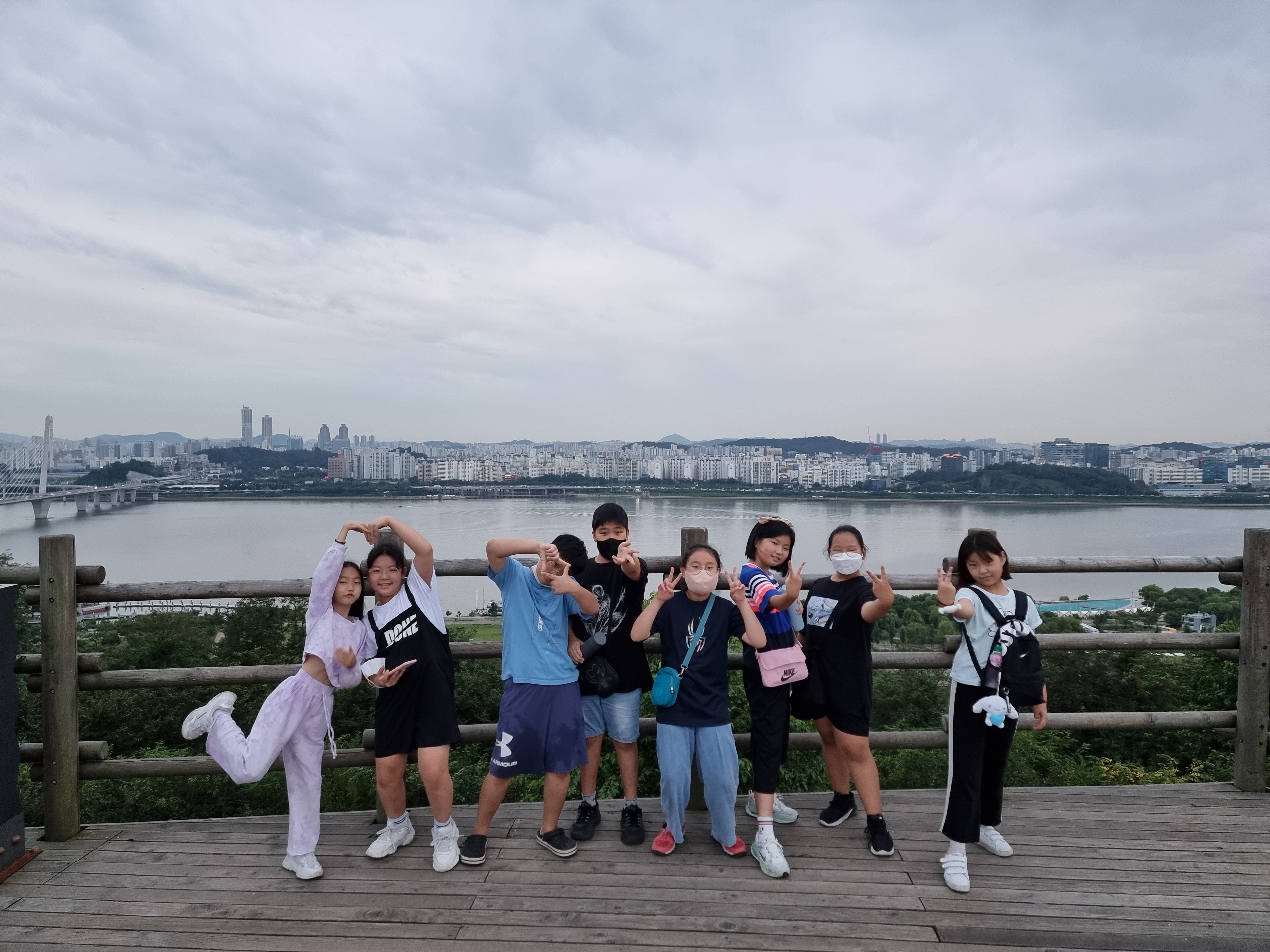 하늘공원으로 이동했습니다. 하늘공원은 쓰레기 매립지였던 공간을 자연으로 복원한 공원이니 환경동아리 산책으로도 제격입니다. 전기로 움직이는 맹꽁이 열차를 타고 올라갔습니다. 선선한 날씨에 넓은 공원에 도착하니 신이 났습니다. 사진 찍고 서로 어울리며 산책했습니다. 하늘공원 전망대에서 일몰을 보려 했는데 날씨가 흐립니다. 대신 마음껏 뛰어놀았습니다. ‘달리기 시합, 옆돌기, 얼음땡, 무궁화꽃이피었습니다’까지 시간 가는 줄 모르고 놀았습니다. 이 모습을 영상에 담았습니다.