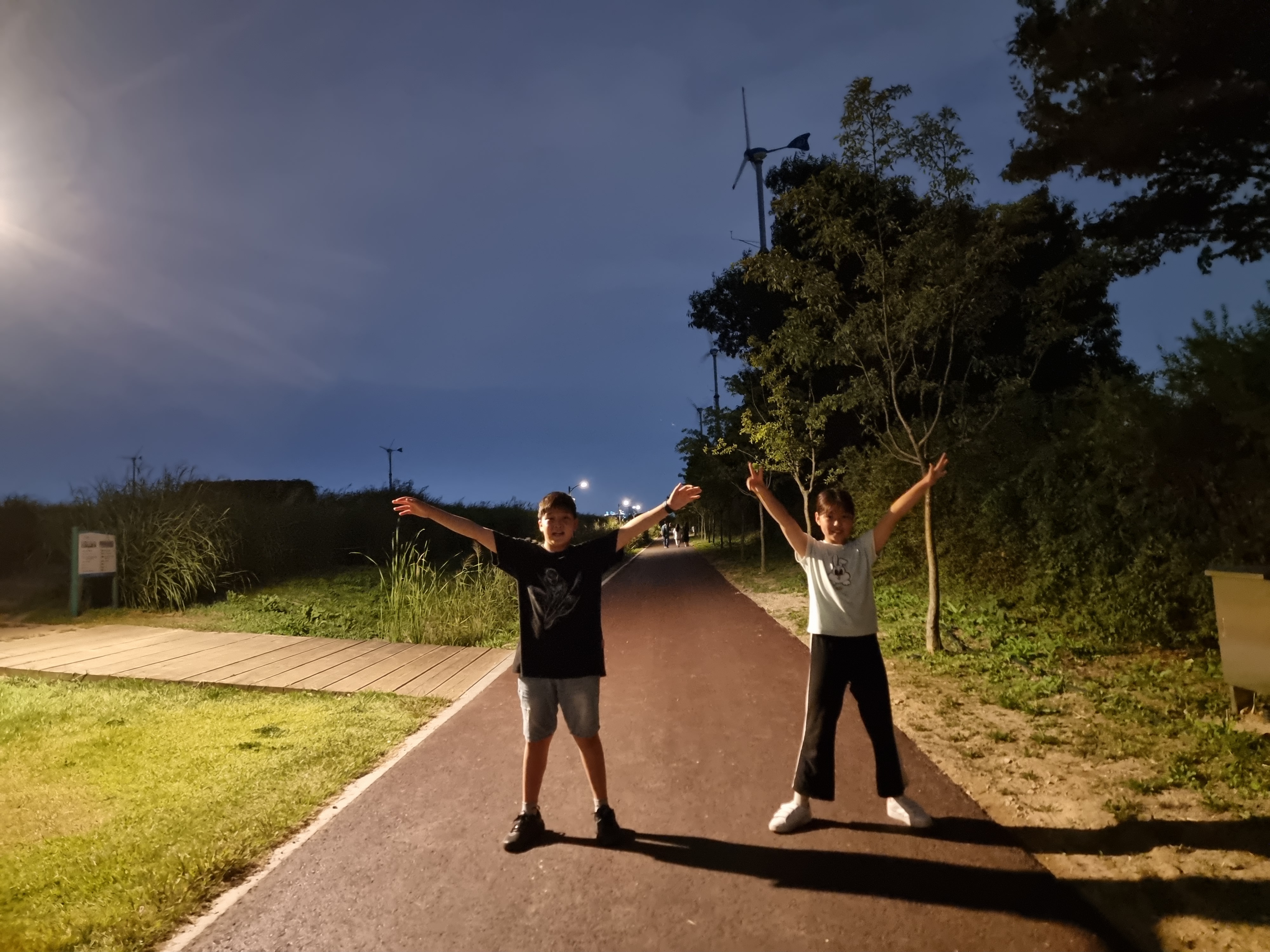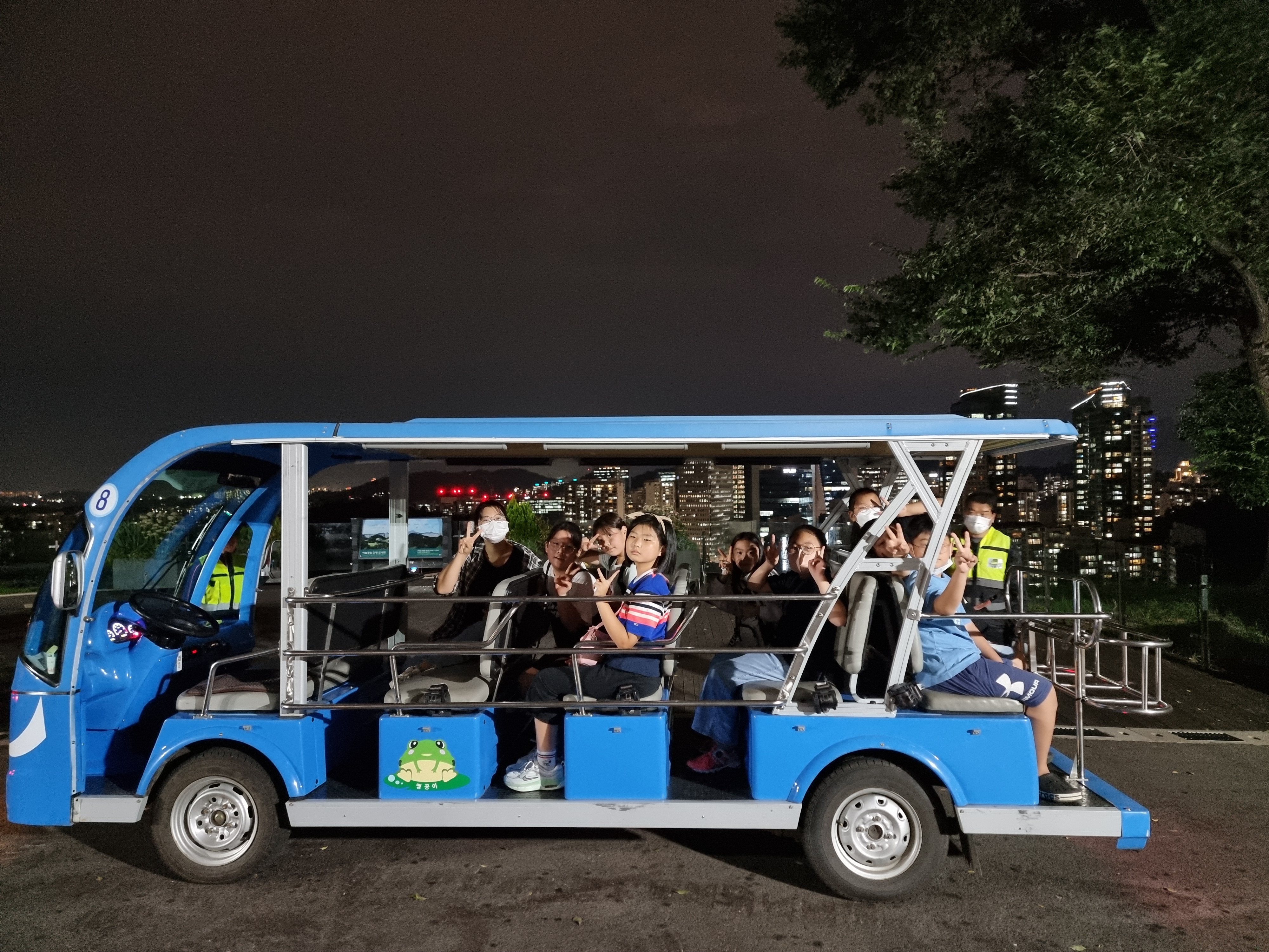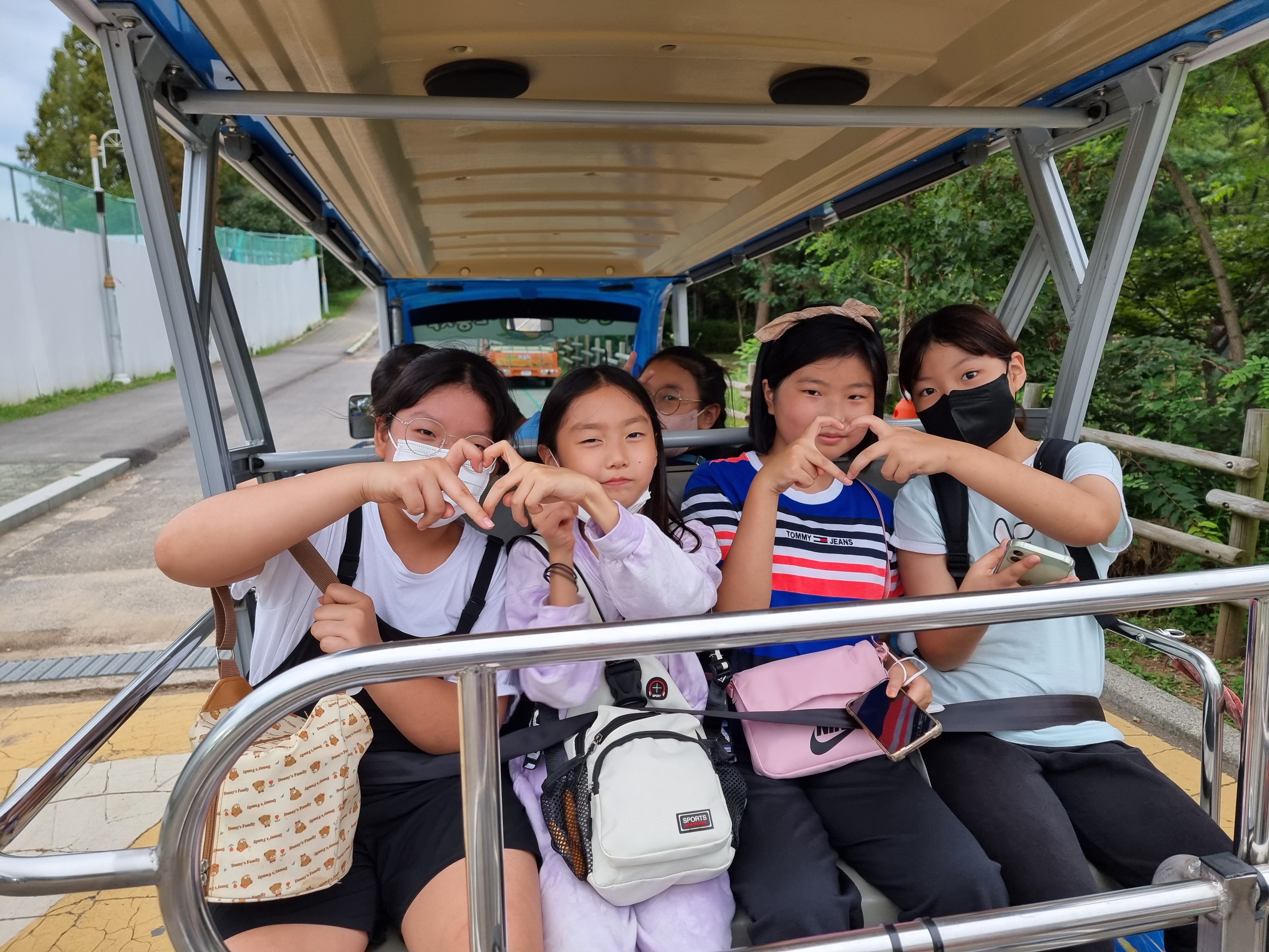 하늘공원으로 이동했습니다. 하늘공원은 쓰레기 매립지였던 공간을 자연으로 복원한 공원이니 환경동아리 산책으로도 제격입니다. 전기로 움직이는 맹꽁이 열차를 타고 올라갔습니다. 선선한 날씨에 넓은 공원에 도착하니 신이 났습니다. 사진 찍고 서로 어울리며 산책했습니다. 하늘공원 전망대에서 일몰을 보려 했는데 날씨가 흐립니다. 대신 마음껏 뛰어놀았습니다. ‘달리기 시합, 옆돌기, 얼음땡, 무궁화꽃이피었습니다’까지 시간 가는 줄 모르고 놀았습니다. 이 모습을 영상에 담았습니다.