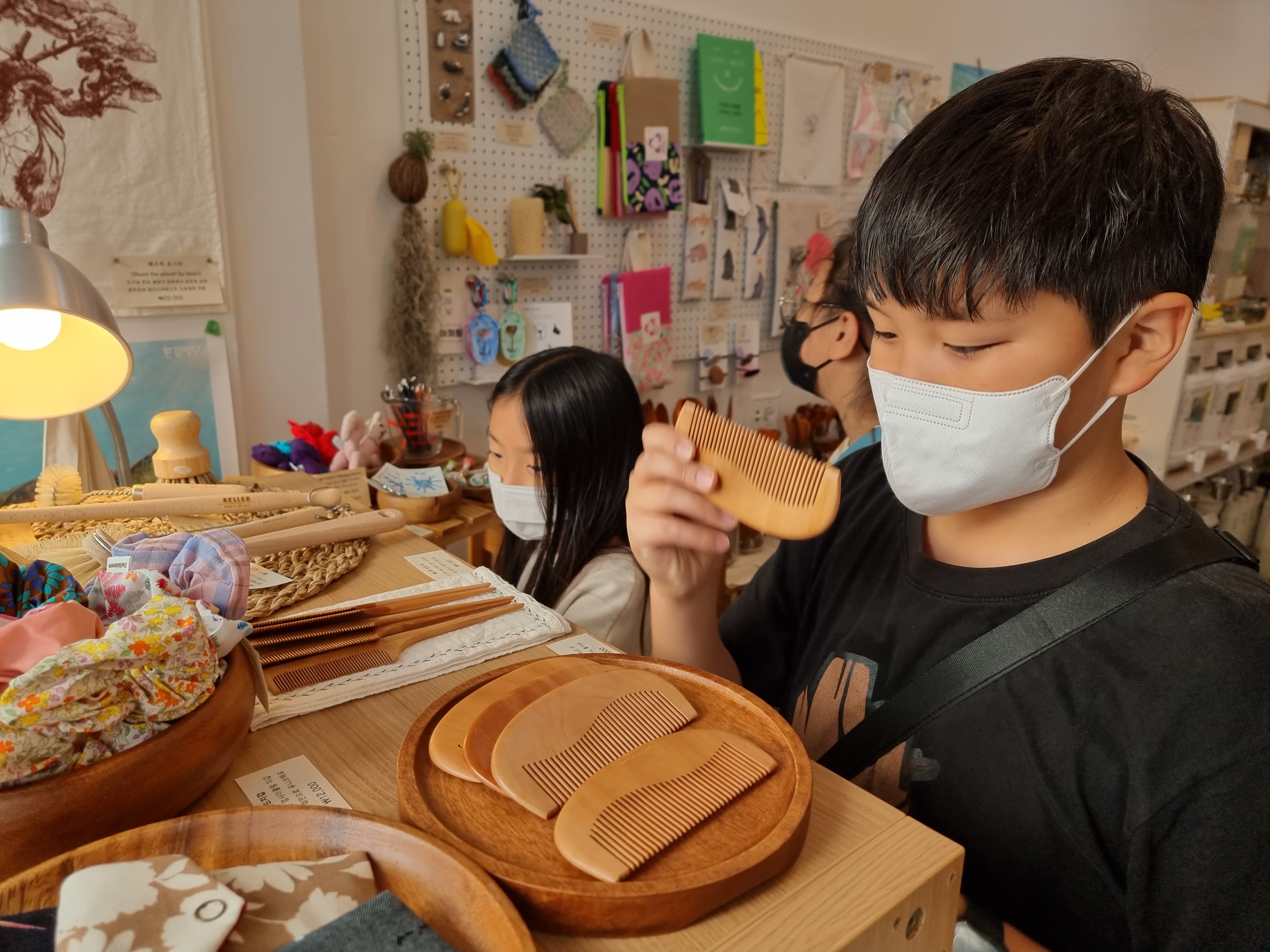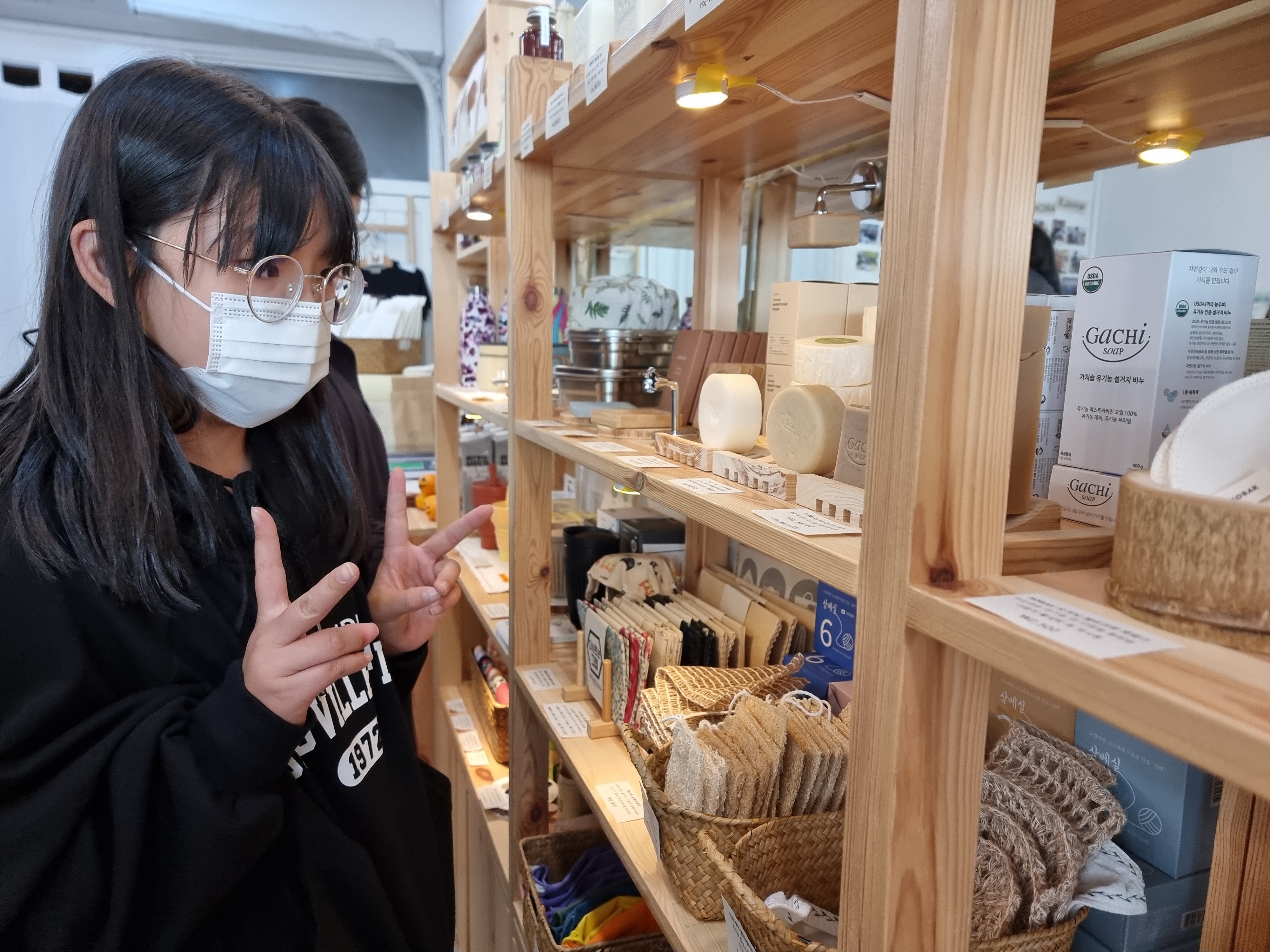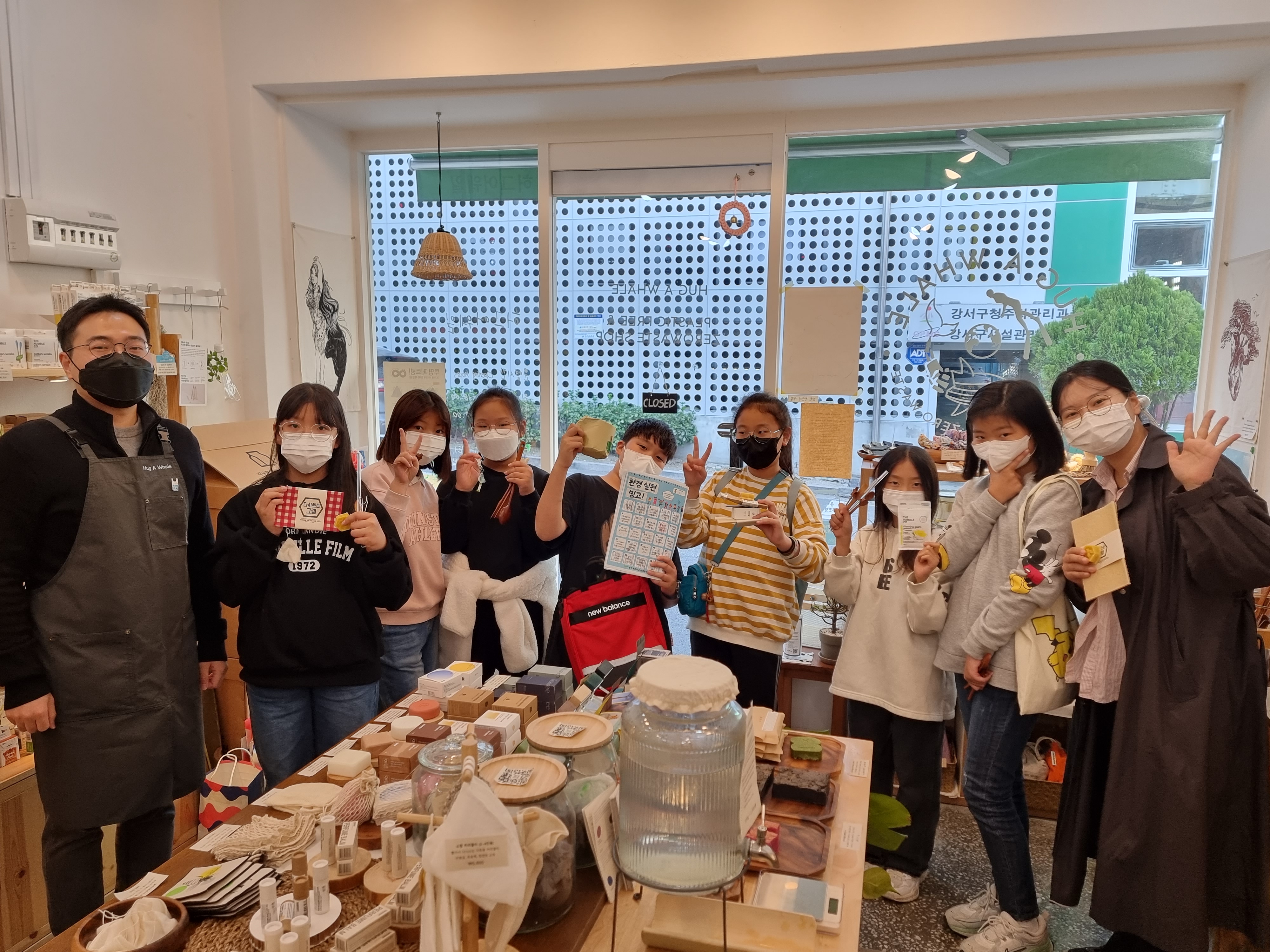 아이들과 교문에 모였습니다. 제가 복지관 다른 일정이 있어 빠르게 다녀와야 하는 상황이라 김정주 선생님까지 다함께 복지관 스타렉스를 타고 화곡동으로 향했습니다. 차에서 빙고 개수를 확인했습니다. 빙고를 가장 많이 한 하린이는 15,000원 상품을, 두 번째 모둠은 13,000원 상품을 마지막 모둠은 10,000원 상품을 사기로 했습니다. 매장에 도착하자마자 여러 물건을 구경했습니다. 환경을 생각하는 물품이 많았습니다. 저마다 마음에 드는 물건을 골랐습니다.