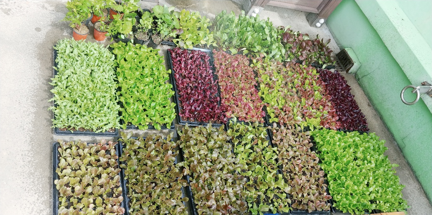 옥상 싱싱텃밭에 식재한 봄채소 모종