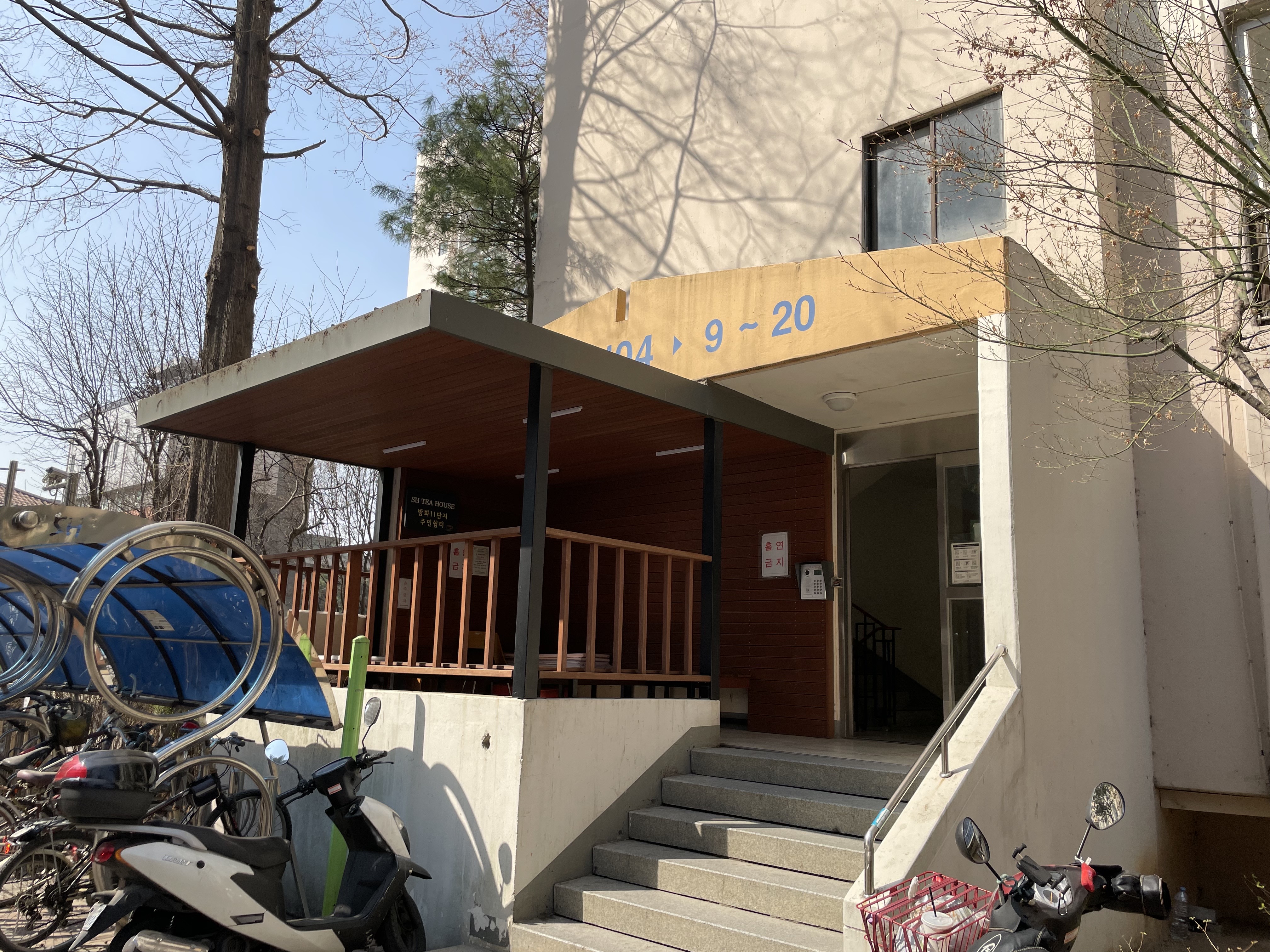 1104동 출입구는 4개인데 2개의 출입구 옆에는 주민쉼터 공간이 있습니다.