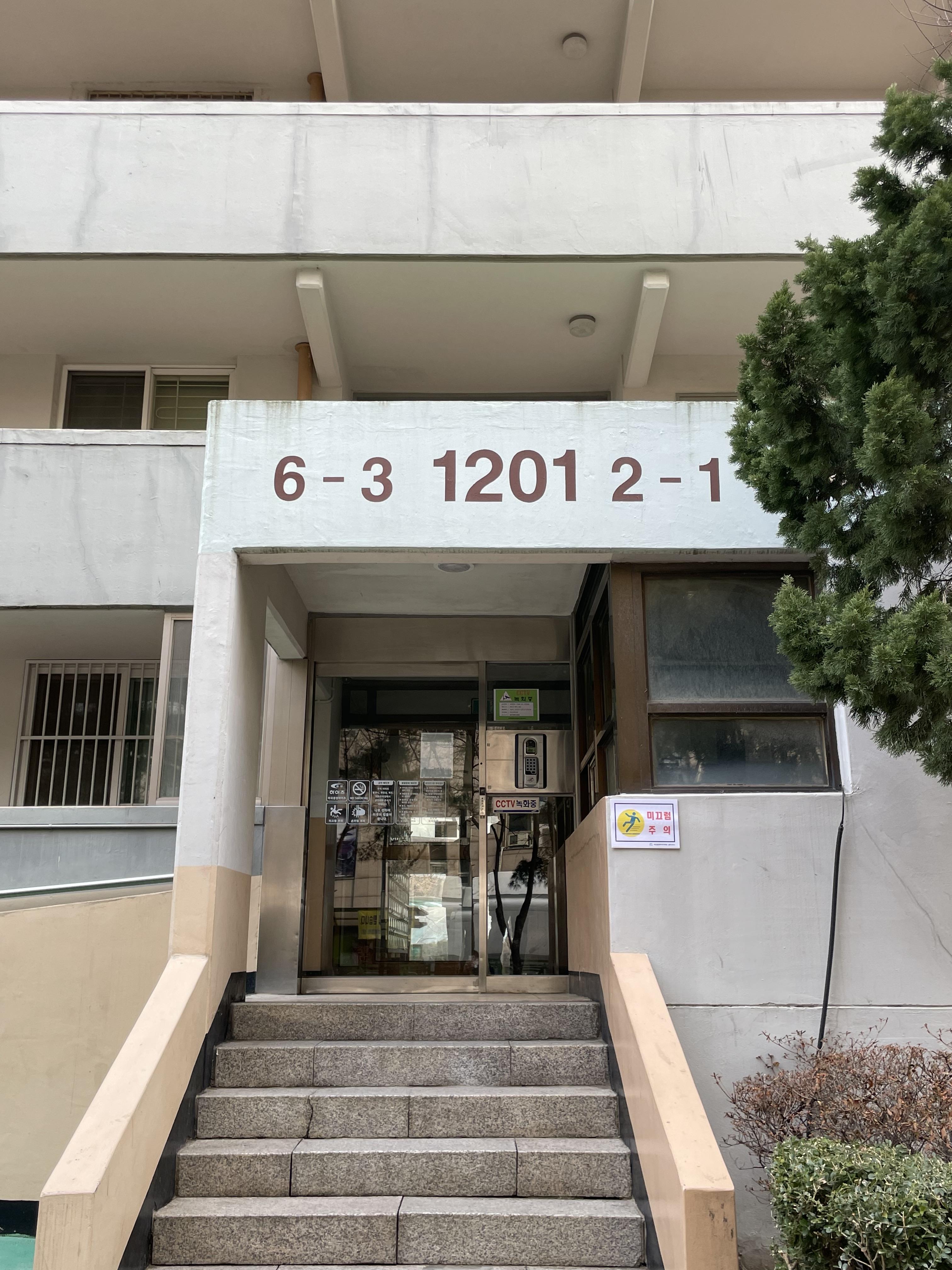 반대쪽 출입구에는 계단과 헌 옷 수거함, 주민분들의 자전거를 보관하는 공간이 있습니다.