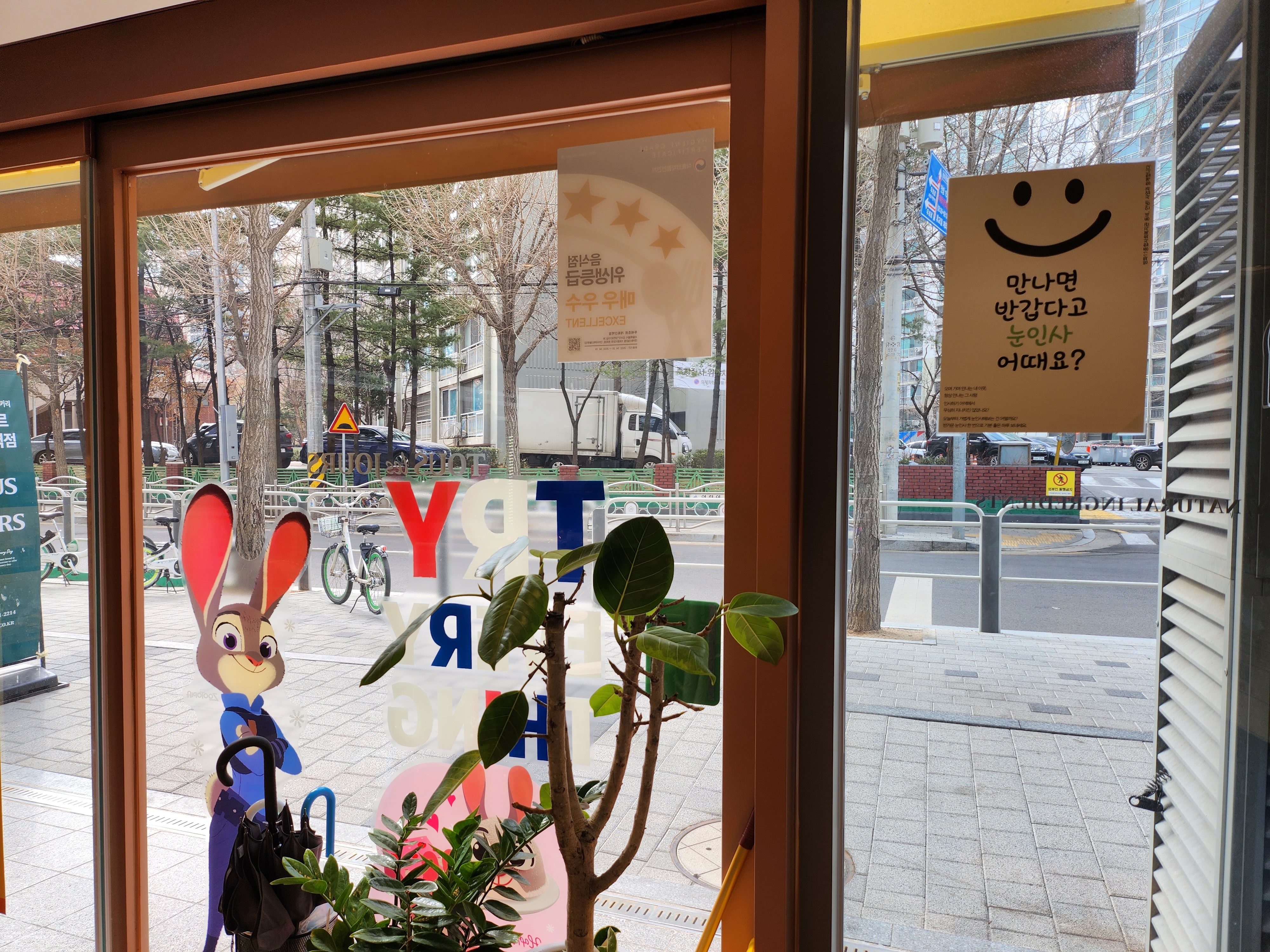 식당에 방문할 때마다 이 가게에 포스터를 부착하면 더 많은 지역주민이 볼 수 있으니 참 좋겠다고 생각했습니다. 상가인사캠페인 포스터를 교체하러 지역사회를 다니던 중 마침 사장님께서 나와 계셔서 제안했더니 흔쾌히 동참해주셨습니다. 감사합니다.
