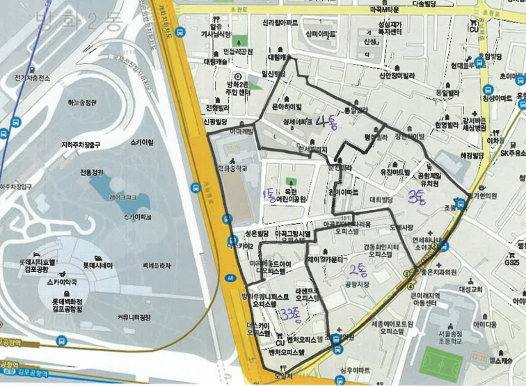 맞은편인 공항동과 방화1동 역시 공항시장역을 중심으로
